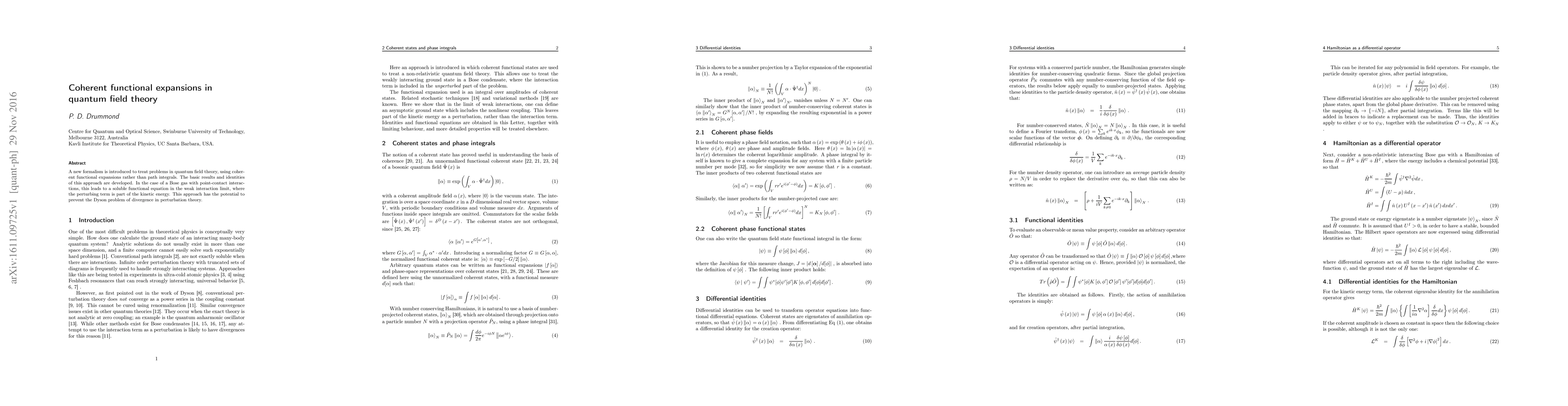 A new formalism is introduced to treat problems in quantum field theory, using coherent functional expansions rather than path integrals. The basic results and identities of this approach are developed. In the case of a Bose gas with point-contact interactions, this leads to a soluble functional equation in the weak interaction limit, where the perturbing term is part of the kinetic energy. This approach has the potential to prevent the Dyson problem of divergence in perturbation theory.