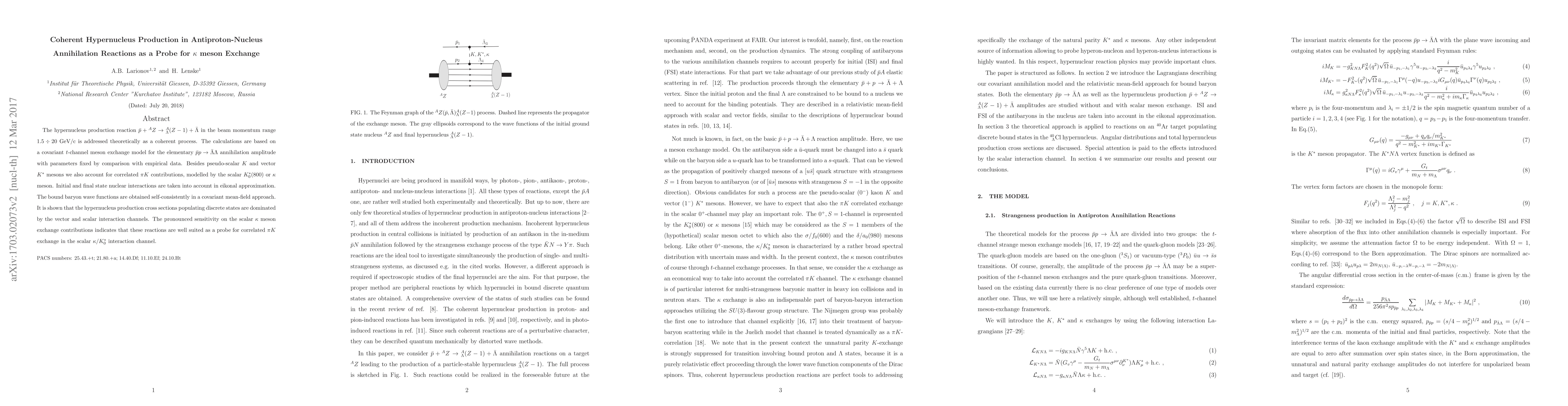 This paper theoretically investigates coherent hypernucleus production in antiproton-nucleus annihilation reactions, focusing on $\kappa$ meson exchange. The study uses a covariant $t$-channel meson exchange model and shows that hypernucleus production cross sections are strongly influenced by vector and scalar meson interactions, particularly the $\kappa$ meson, making these reactions effective probes for $\pi K$ correlations.