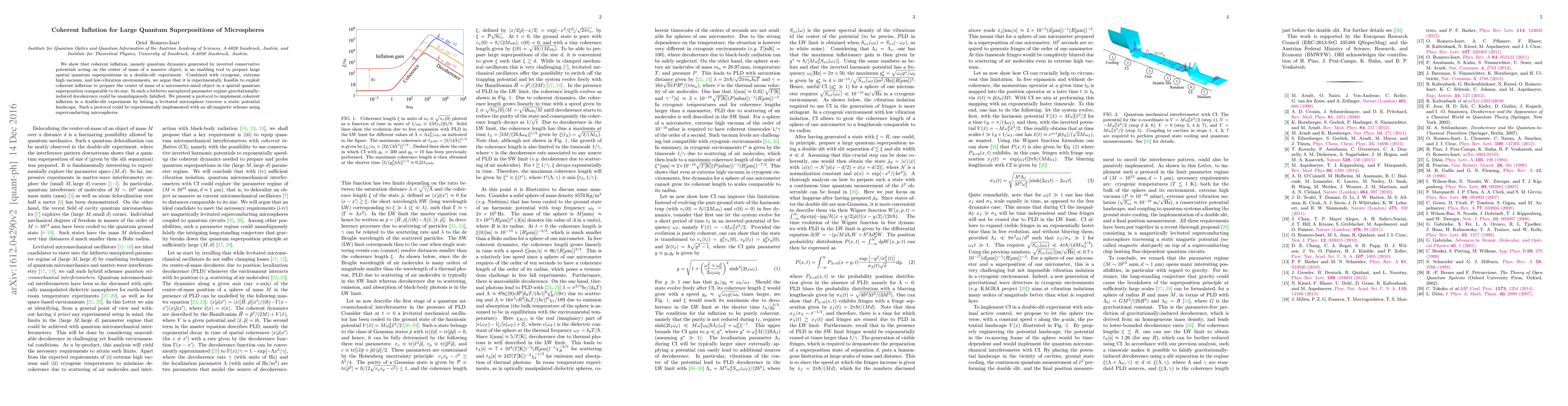 This paper demonstrates that coherent inflation, driven by inverted conservative potentials, can prepare large spatial quantum superpositions in a double-slit experiment for micrometer-sized objects. The proposed protocol, feasible in cryogenic, high vacuum, and low-vibration conditions, aims to test the limits of gravitationally-induced decoherence in unprecedented parameter regimes.