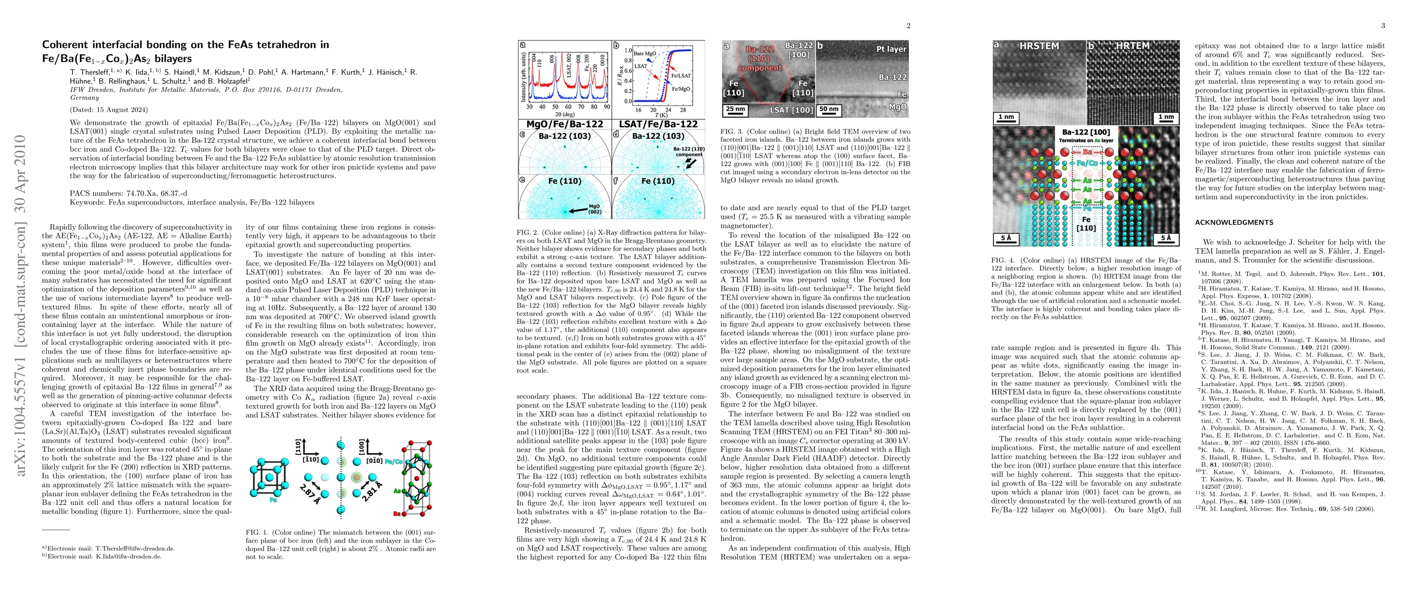 This study demonstrates the growth of epitaxial Fe/Ba(Fe(1-x)Co(x))2As2 bilayers on MgO and LSAT substrates using PLD, achieving a coherent bond between bcc iron and Co-doped Ba-122. The FeAs tetrahedron's metallic nature facilitates this interface, potentially enabling the fabrication of superconducting/ferromagnetic heterostructures.