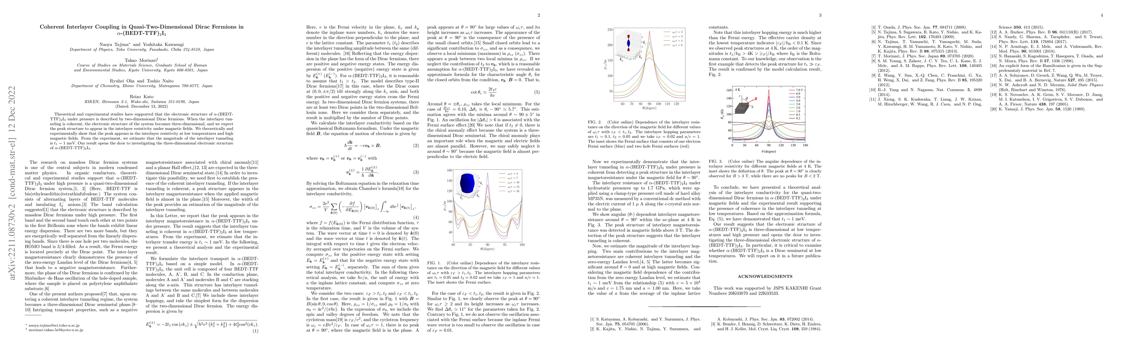 The paper demonstrates both theoretical and experimental evidence of coherent interlayer coupling in $\alpha$-(BEDT-TTF)$_2$I$_3$, showing a peak in interlayer resistivity under low temperatures and high magnetic fields, which indicates a transition to a three-dimensional electronic structure. The interlayer tunneling magnitude is estimated to be $t_1 \sim 1$ meV.
