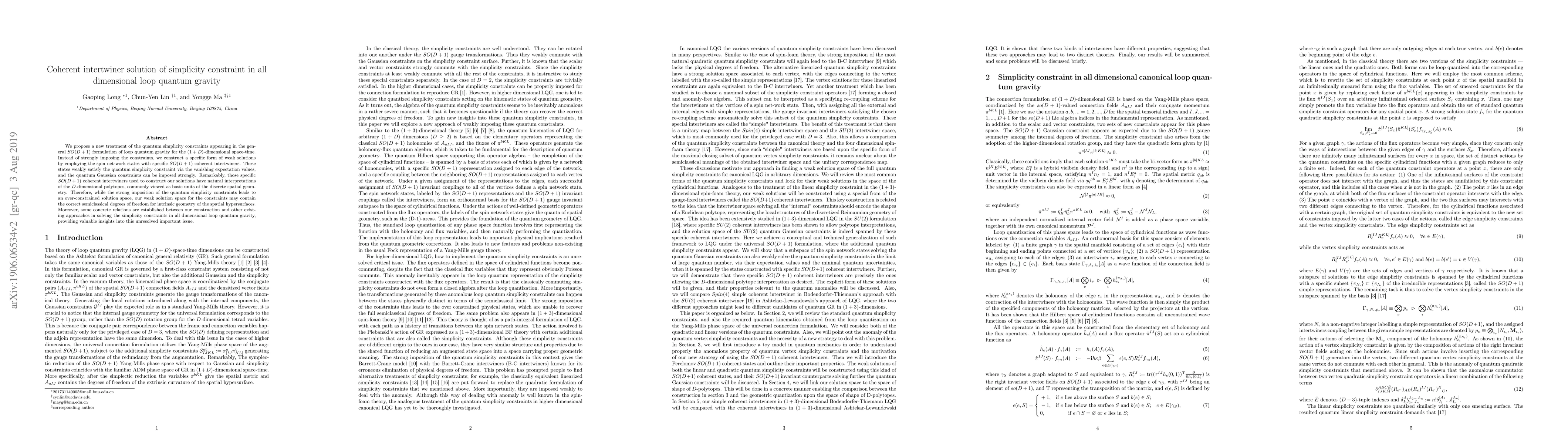 This paper proposes a novel approach to addressing quantum simplicity constraints in loop quantum gravity by constructing weak solutions using specific coherent intertwiners instead of imposing them strongly. These intertwiners correspond to $D$-dimensional polytopes, potentially providing a more suitable framework for the intrinsic geometry of spatial hypersurfaces.