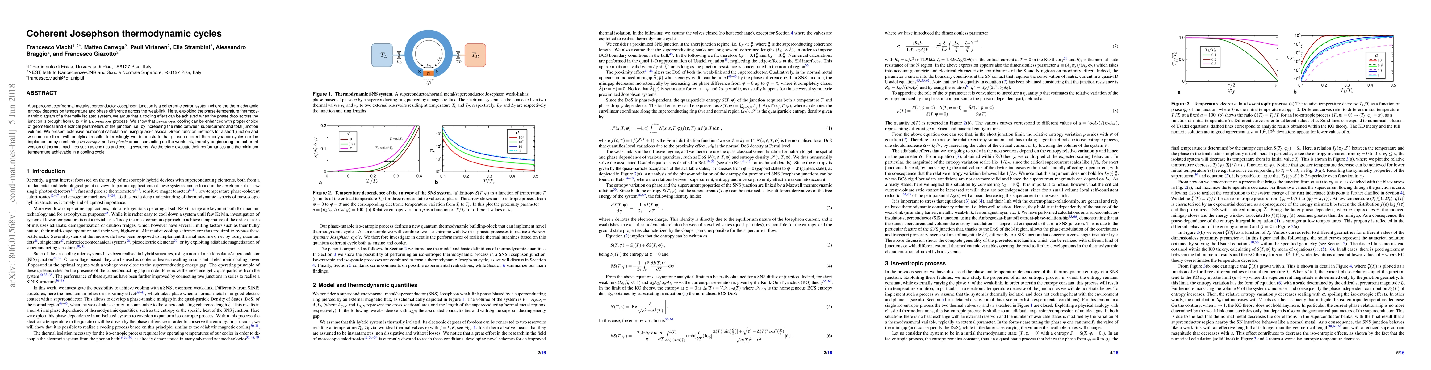 This paper explores coherent Josephson junctions as platforms for thermodynamic cycles, demonstrating that cooling can be achieved through iso-entropic processes. It shows how optimizing junction parameters can enhance the cooling effect and presents numerical and analytical methods to evaluate the performance of these phase-coherent thermal machines.