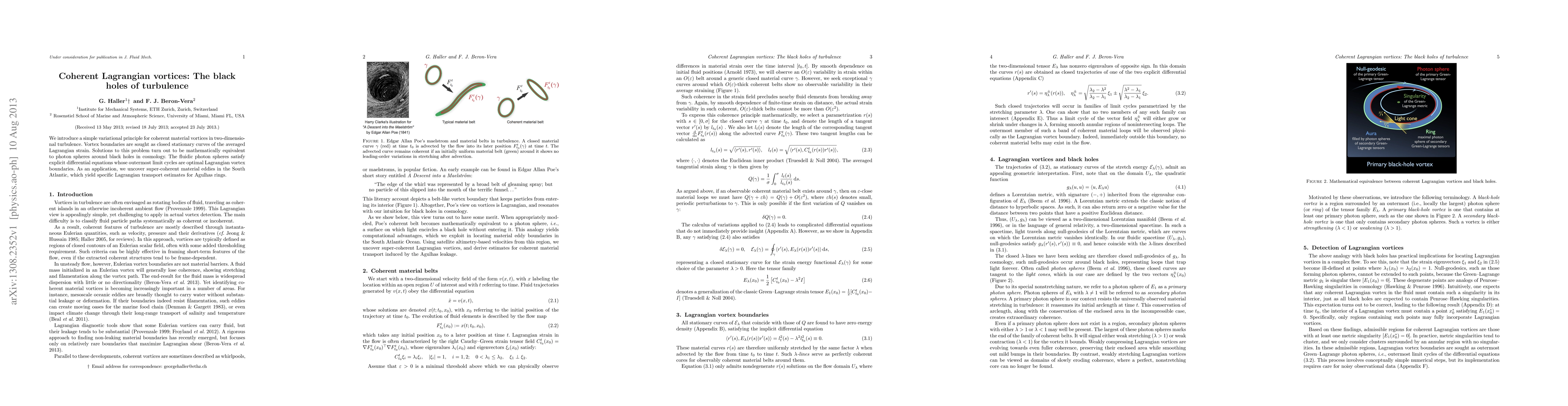 We introduce a simple variational principle for coherent material vortices in two-dimensional turbulence. Vortex boundaries are sought as closed stationary curves of the averaged Lagrangian strain. Solutions to this problem turn out to be mathematically equivalent to photon spheres around black holes in cosmology. The fluidic photon spheres satisfy explicit differential equations whose outermost limit cycles are optimal Lagrangian vortex boundaries. As an application, we uncover super-coherent material eddies in the South Atlantic, which yield specific Lagrangian transport estimates for Agulhas rings.