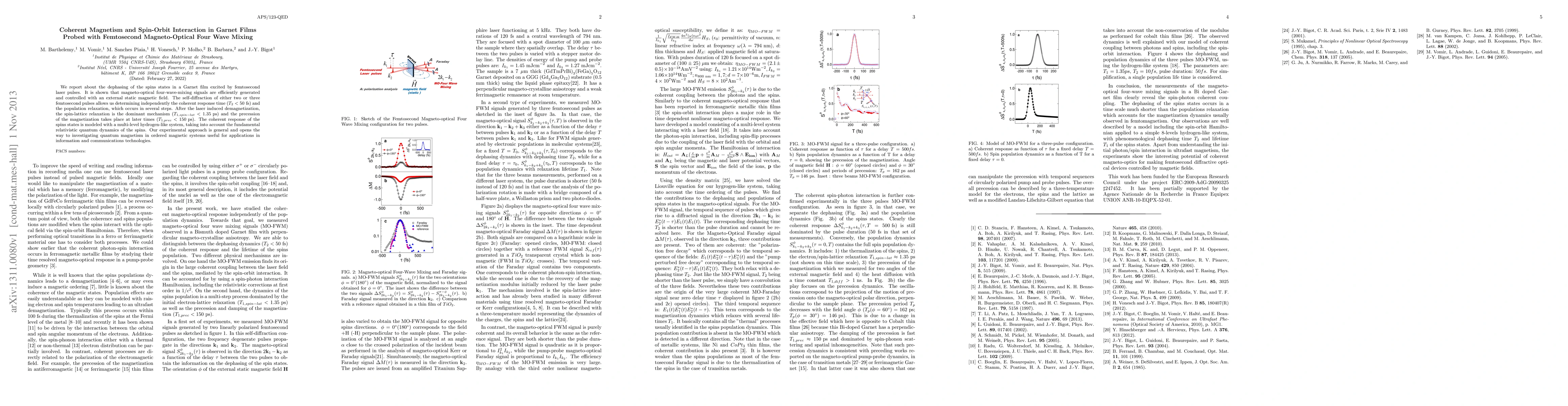 This paper investigates the coherent magnetism and spin-orbit interaction in Garnet films using femtosecond magneto-optical four-wave mixing, revealing a short coherent response time of less than 50 fs and multi-step population relaxation processes. The study provides insights into spin-lattice and magnetization precession dynamics, paving the way for advanced quantum magnetism research.