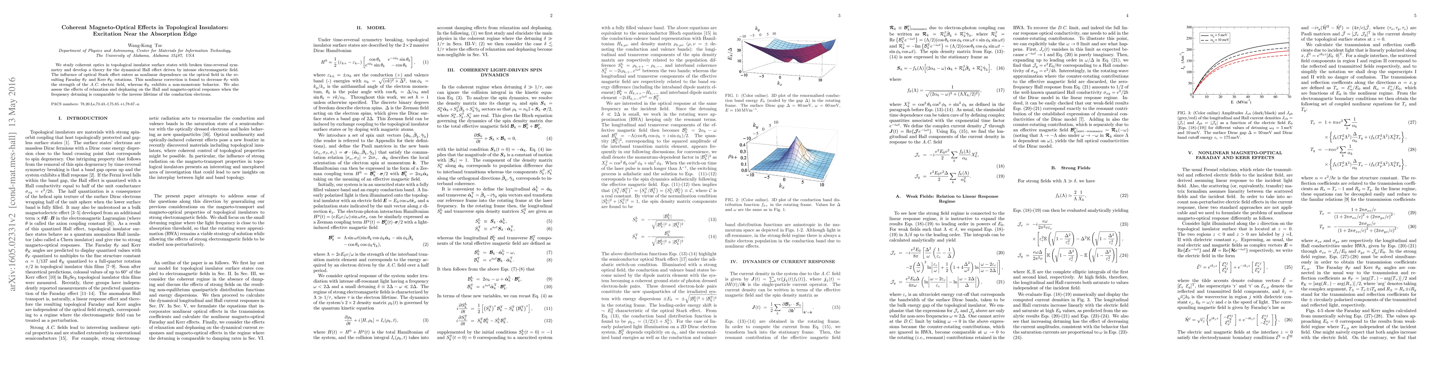 We study coherent optics in topological insulator surface states with broken time-reversal symmetry and develop a theory for the dynamical Hall effect driven by intense electromagnetic field. The influence of optical Stark effect enters as nonlinear dependence on the optical field in the resulting Faraday $\theta_F$ and Kerr $\theta_K$ rotations. This nonlinear correction is found to decrease $\theta_F$ with the strength of the A.C. electric field, whereas $\theta_K$ exhibits a non-monotonic behavior. We also assess the effects of relaxation and dephasing on the Hall and magneto-optical responses when the frequency detuning is comparable to the inverse lifetime of the conduction electrons.