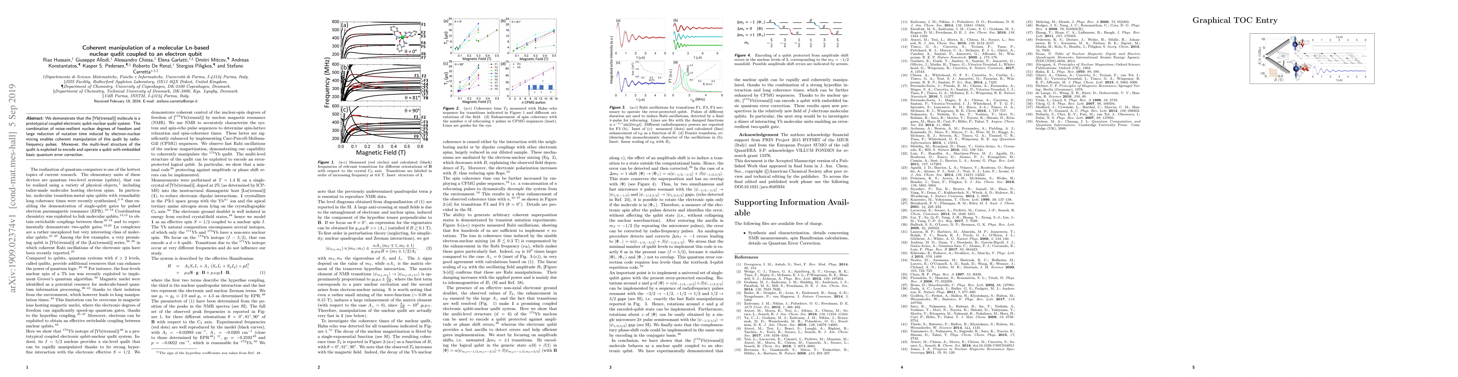 This paper demonstrates coherent manipulation of a nuclear qudit in a Yb-based molecule coupled with an electron qubit, leveraging nuclear degrees of freedom and electron-nuclear interactions to reduce nutation time and enable quantum error correction.
