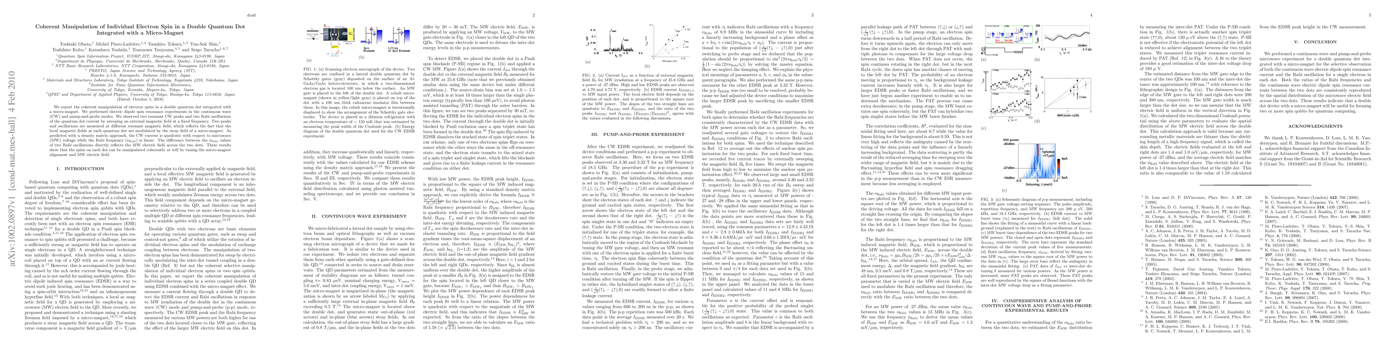 This paper reports on the coherent manipulation of individual electron spins in a double quantum dot system integrated with a micro-magnet, using electric dipole spin resonance. The study demonstrates control over each dot's spin through external magnetic field tuning and microwave fields, confirming theoretical predictions and highlighting the potential for precise spin manipulation.