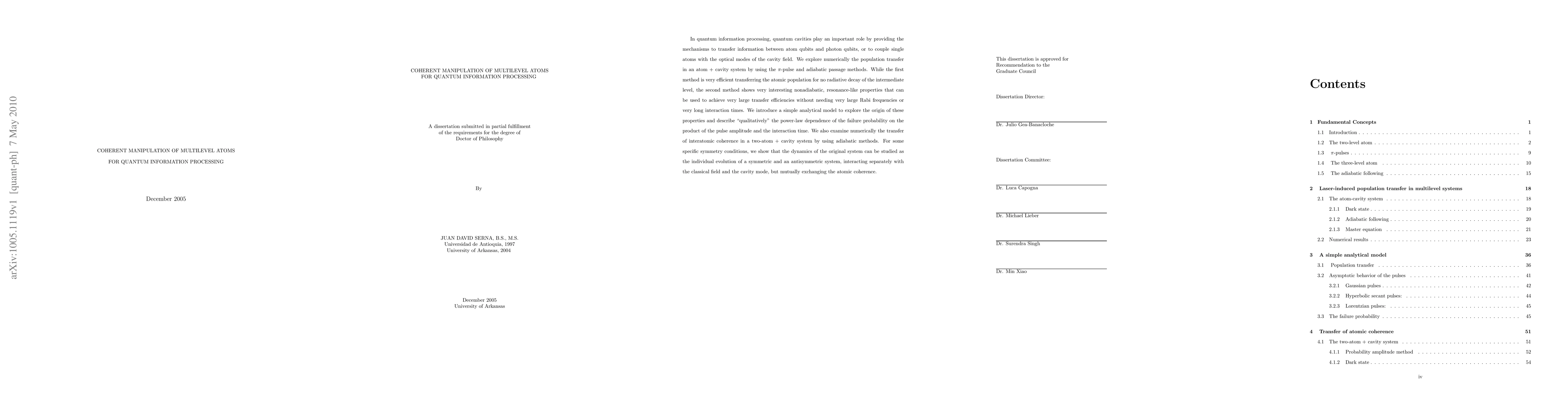 In quantum information processing, quantum cavities play an important role by providing the mechanisms to transfer information between atom qubits and photon qubits, or to couple single atoms with the optical modes of the cavity field. We explore numerically the population transfer in an atom + cavity system by using the $\pi$-pulse and adiabatic passage methods. While the first method is very efficient transferring the atomic population for no radiative decay of the intermediate level, the second method shows very interesting nonadiabatic, resonance-like properties that can be used to achieve very large transfer efficiencies without needing very large Rabi frequencies or very long interaction times. We introduce a simple analytical model to explore the origin of these properties and describe "qualitatively" the power-law dependence of the failure probability on the product of the pulse amplitude and the interaction time. We also examine numerically the transfer of interatomic coherence in a two-atom + cavity system by using adiabatic methods. For some specific symmetry conditions, we show that the dynamics of the original system can be studied as the individual evolution of a symmetric and an antisymmetric system, interacting separately with the classical field and the cavity mode, but mutually exchanging the atomic coherence.