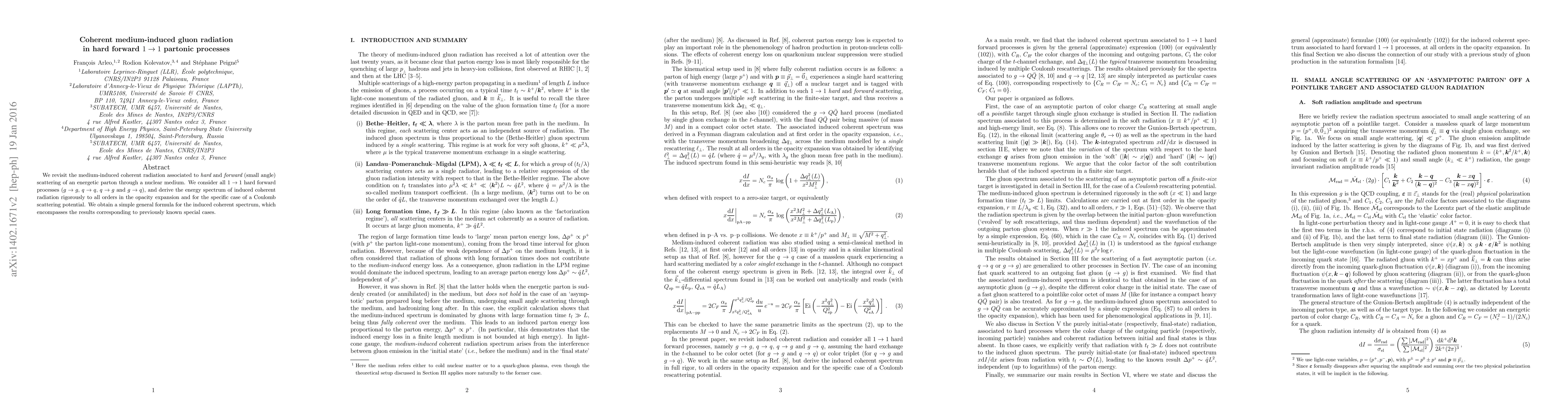 We revisit the medium-induced coherent radiation associated to hard and forward (small angle) scattering of an energetic parton through a nuclear medium. We consider all $1\to 1$ hard forward processes ($g \to g$, $q \to q$, $q \to g$ and $g \to q$), and derive the energy spectrum of induced coherent radiation rigorously to all orders in the opacity expansion and for the specific case of a Coulomb scattering potential. We obtain a simple general formula for the induced coherent spectrum, which encompasses the results corresponding to previously known special cases.