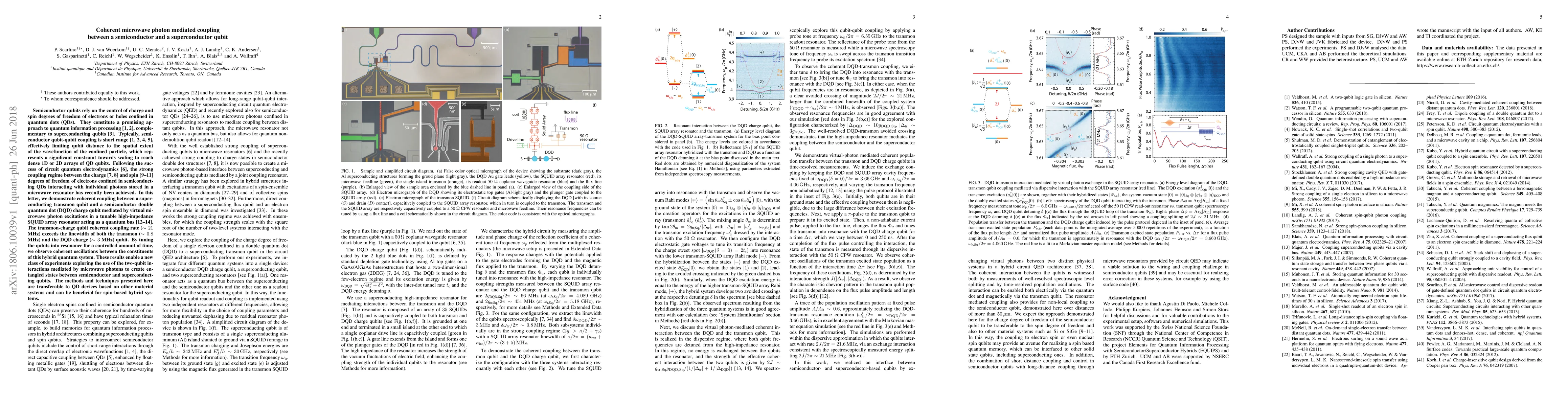 This paper demonstrates coherent coupling between a semiconductor double quantum dot charge qubit and a superconducting transmon qubit mediated by virtual microwave photons in a high-impedance SQUID array resonator. The achieved coupling rate exceeds the linewidths of both qubits, enabling potential applications in creating entangled states between semiconductor and superconducting qubits.