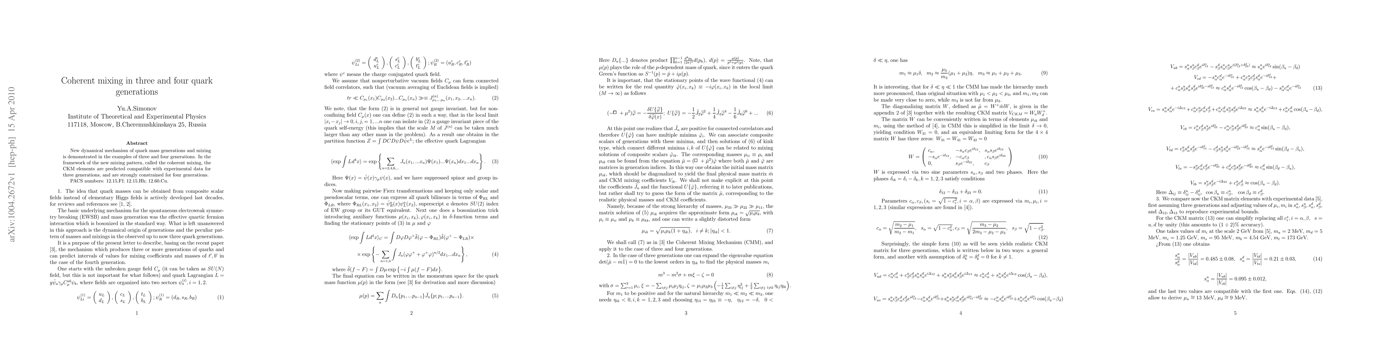 This paper introduces a novel dynamical mechanism for generating quark masses and mixing, termed coherent mixing, which successfully predicts CKM matrix elements consistent with experimental data for three generations and provides strong constraints for four generations.