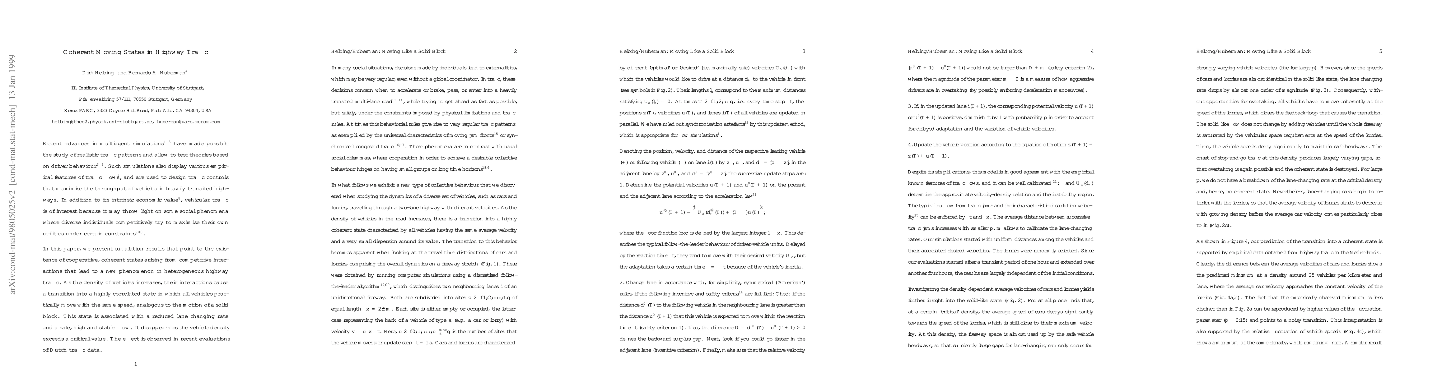 Researchers found a new phenomenon in highway traffic where vehicles form coherent states that move at the same speed, analogous to a solid block, leading to high flow rates and stable traffic conditions. This state is observed at moderate vehicle densities and disappears above a critical density threshold.