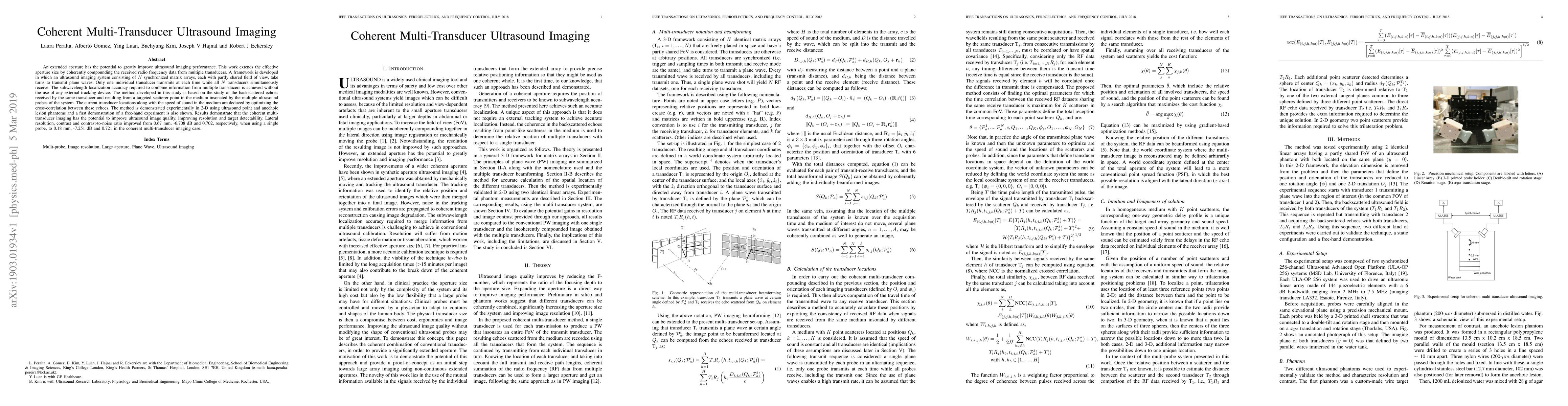 This paper proposes a method to enhance ultrasound imaging by coherently compounding data from multiple transducers, improving resolution and image quality. Experimental results show significant improvements in lateral resolution, contrast, and contrast-to-noise ratio using a coherent multi-transducer approach compared to single-probe imaging.