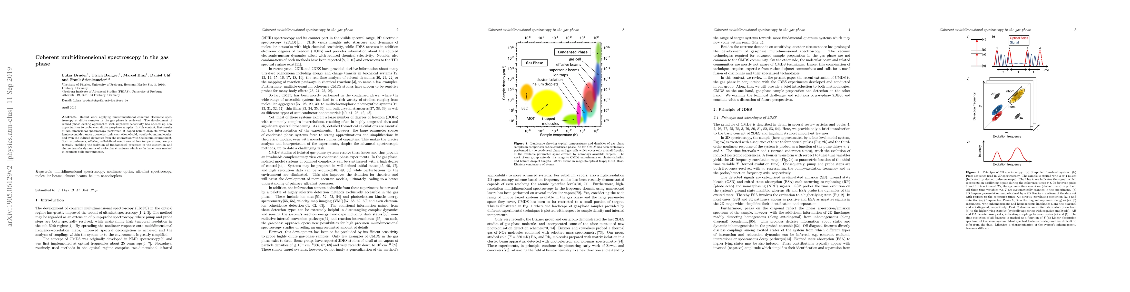 Recent work applying multidimentional coherent electronic spectroscopy at dilute samples in the gas phase is reviewed. The development of refined phase-cycling approaches with improved sensitivity has opened-up new opportunities to probe even dilute gas-phase samples. In this context, first results of 2-dimensional spectroscopy performed at doped helium droplets reveal the femtosecond dynamics upon electronic excitation of cold, weakly-bound molecules, and even the induced dynamics from the interaction with the helium environment. Such experiments, offering well-defined conditions at low temperatures, are potentially enabling the isolation of fundamental processes in the excitation and charge transfer dynamics of molecular structures which so far have been masked in complex bulk environments.