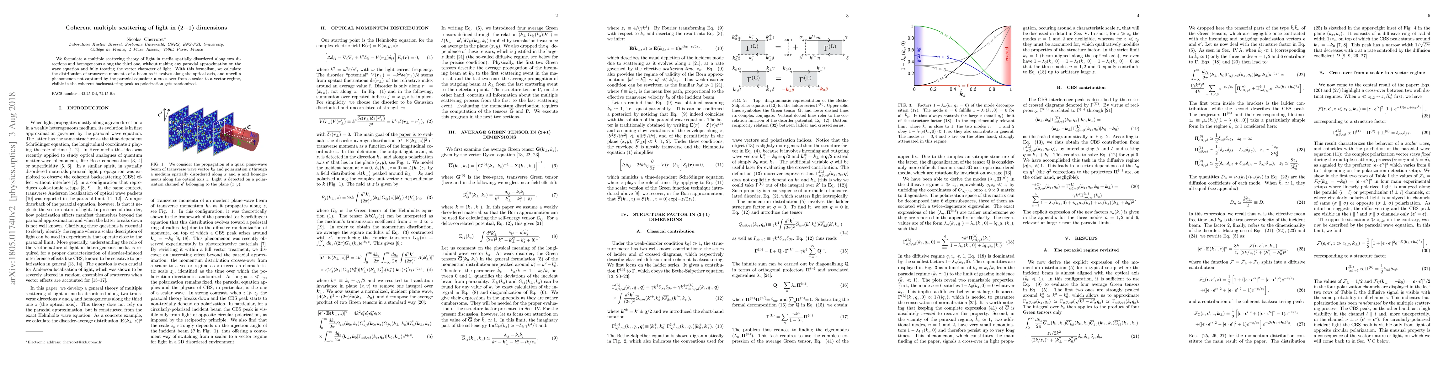 We formulate a multiple scattering theory of light in media spatially disordered along two directions and homogeneous along the third one, without making any paraxial approximation on the wave equation and fully treating the vector character of light. With this formalism, we calculate the distribution of transverse momenta of a beam as it evolves along the optical axis, and unveil a phenomenon not captured by the paraxial equation: a cross-over from a scalar to a vector regime, visible in the coherent backscattering peak as polarization gets randomized.