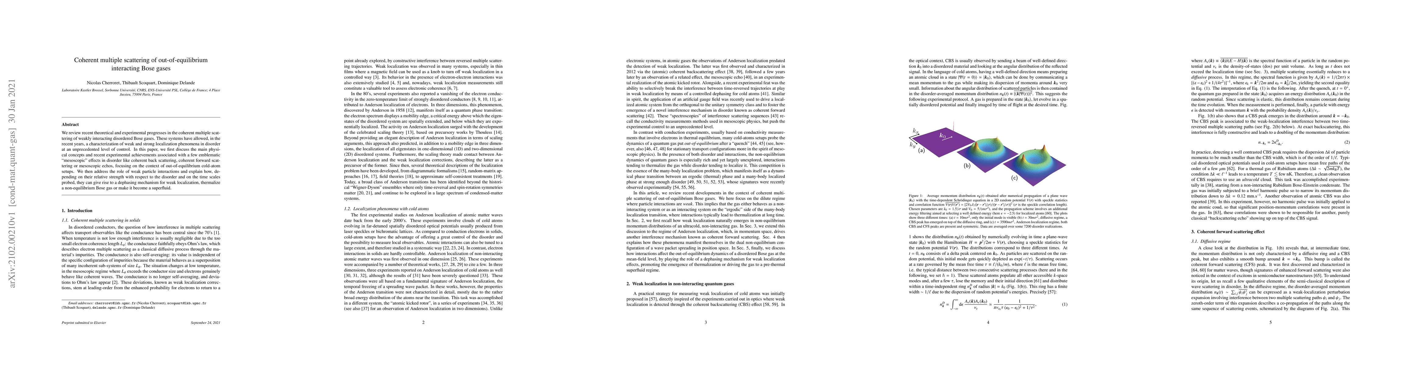 This paper reviews recent advances in the study of coherent multiple scattering in weakly interacting disordered Bose gases, highlighting mesoscopic phenomena like coherent back scattering and the role of weak interactions in localization, dephasing, and superfluidity in out-of-equilibrium cold-atom systems.