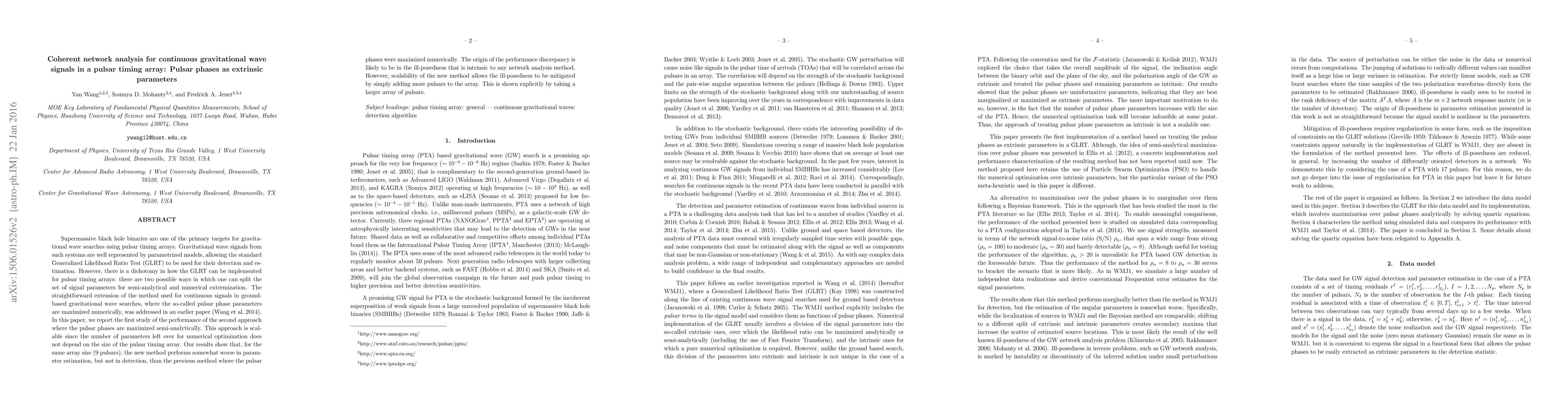 Supermassive black hole binaries are one of the primary targets for gravitational wave searches using pulsar timing arrays. Gravitational wave signals from such systems are well represented by parametrized models, allowing the standard Generalized Likelihood Ratio Test (GLRT) to be used for their detection and estimation. However, there is a dichotomy in how the GLRT can be implemented for pulsar timing arrays: there are two possible ways in which one can split the set of signal parameters for semi-analytical and numerical extremization. The straightforward extension of the method used for continuous signals in ground-based gravitational wave searches, where the so-called pulsar phase parameters are maximized numerically, was addressed in an earlier paper (Wang et al. 2014). In this paper, we report the first study of the performance of the second approach where the pulsar phases are maximized semi-analytically. This approach is scalable since the number of parameters left over for numerical optimization does not depend on the size of the pulsar timing array. Our results show that, for the same array size (9 pulsars), the new method performs somewhat worse in parameter estimation, but not in detection, than the previous method where the pulsar phases were maximized numerically. The origin of the performance discrepancy is likely to be in the ill-posedness that is intrinsic to any network analysis method. However, scalability of the new method allows the ill-posedness to be mitigated by simply adding more pulsars to the array. This is shown explicitly by taking a larger array of pulsars.