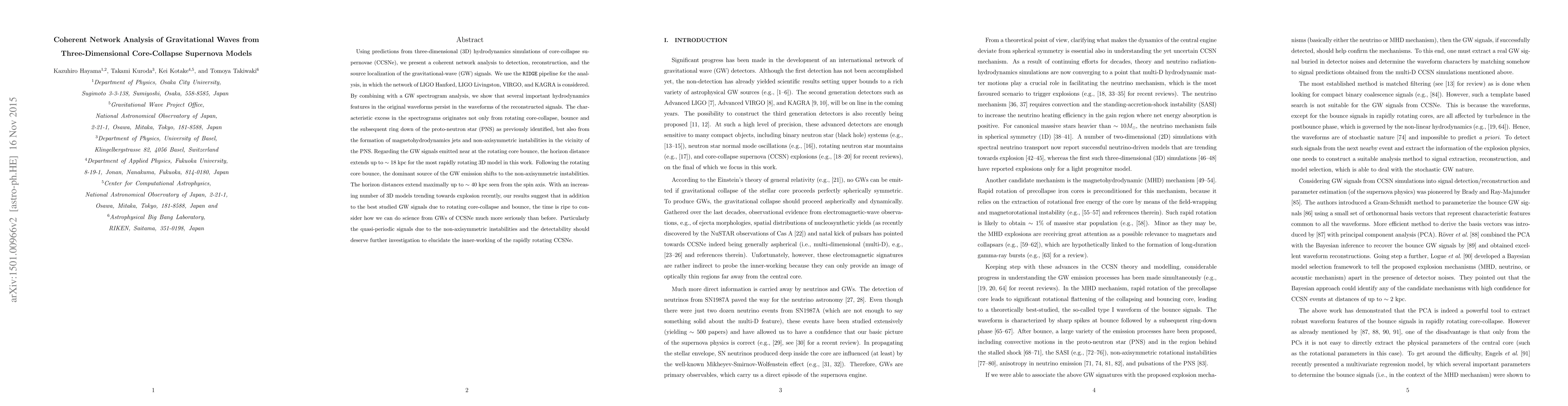 Using predictions from three-dimensional (3D) hydrodynamics simulations of core-collapse supernovae (CCSNe), we present a coherent network analysis to detection, reconstruction, and the source localization of the gravitational-wave (GW) signals. We use the {\tt RIDGE} pipeline for the analysis, in which the network of LIGO Hanford, LIGO Livingston, VIRGO, and KAGRA is considered. By combining with a GW spectrogram analysis, we show that several important hydrodynamics features in the original waveforms persist in the waveforms of the reconstructed signals. The characteristic excess in the spectrograms originates not only from rotating core-collapse, bounce and the subsequent ring down of the proto-neutron star (PNS) as previously identified, but also from the formation of magnetohydrodynamics jets and non-axisymmetric instabilities in the vicinity of the PNS. Regarding the GW signals emitted near at the rotating core bounce, the horizon distance extends up to $\sim$ 18 kpc for the most rapidly rotating 3D model in this work. Following the rotating core bounce, the dominant source of the GW emission shifts to the non-axisymmetric instabilities. The horizon distances extend maximally up to $\sim$ 40 kpc seen from the spin axis. With an increasing number of 3D models trending towards explosion recently, our results suggest that in addition to the best studied GW signals due to rotating core-collapse and bounce, the time is ripe to consider how we can do science from GWs of CCSNe much more seriously than before. Particularly the quasi-periodic signals due to the non-axisymmetric instabilities and the detectability should deserve further investigation to elucidate the inner-working of the rapidly rotating CCSNe.