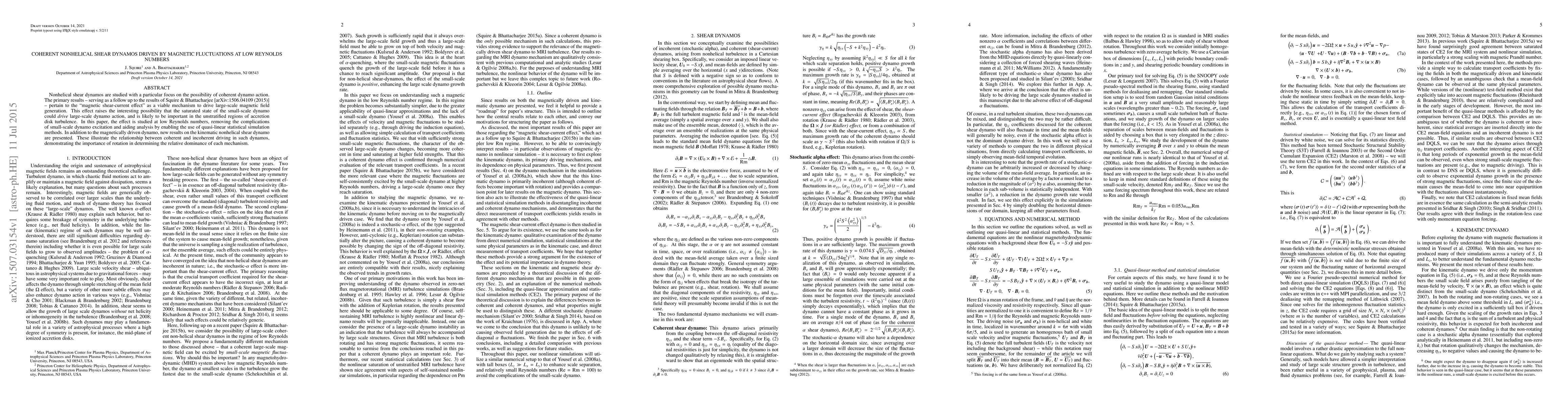 This paper investigates nonhelical shear dynamos, focusing on coherent dynamo action driven by magnetic fluctuations at low Reynolds numbers, and explores the "magnetic shear-current effect" as a mechanism for large-scale magnetic field generation, relevant in unstratified accretion disk turbulence. It also presents new findings on kinematic nonhelical shear dynamos, highlighting the role of rotation in determining the dominance of coherent versus incoherent driving mechanisms.