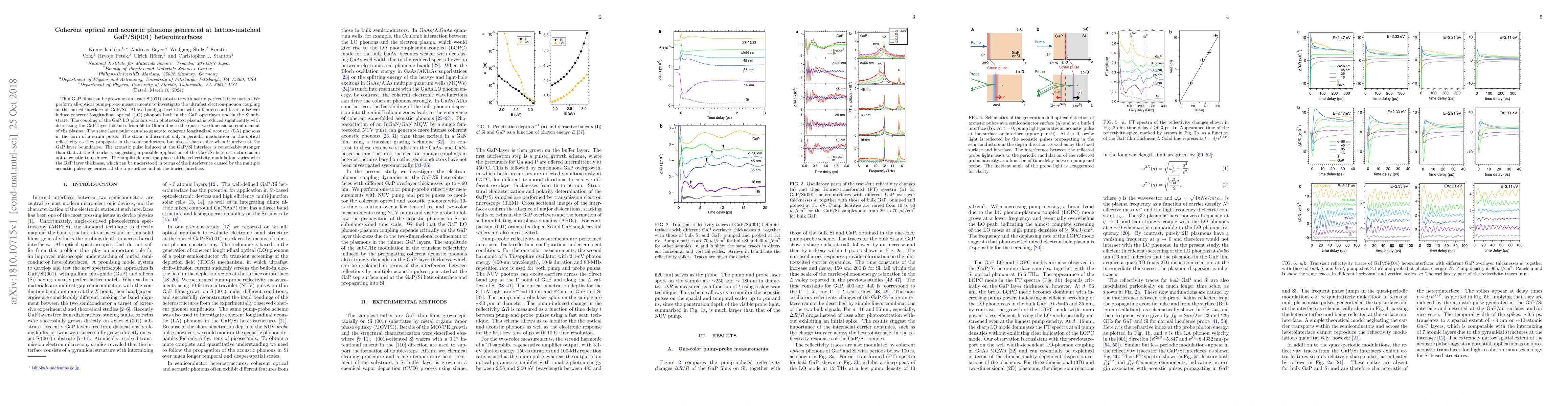 This study investigates ultrafast electron-phonon coupling at lattice-matched GaP/Si(001) heterointerfaces using femtosecond laser pulses, revealing coherent optical and acoustic phonons. The GaP LO phonons and induced LA phonons exhibit distinct behaviors depending on the GaP layer thickness, suggesting potential opto-acoustic applications.