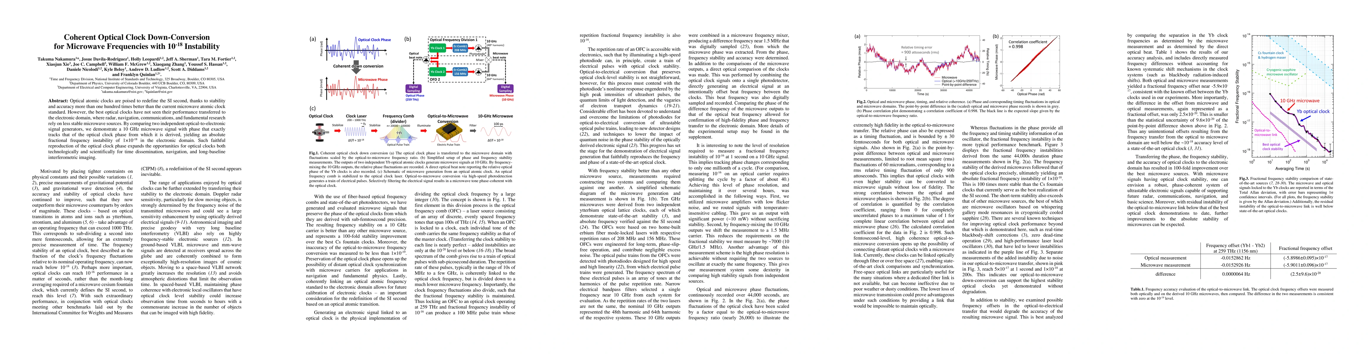 This paper demonstrates a method for coherent down-conversion of optical atomic clock signals to microwave frequencies, achieving an unprecedented 1*10^-18 instability. This breakthrough enables the transfer of optical clock precision to the electronic domain, enhancing applications in radar, navigation, and communications.