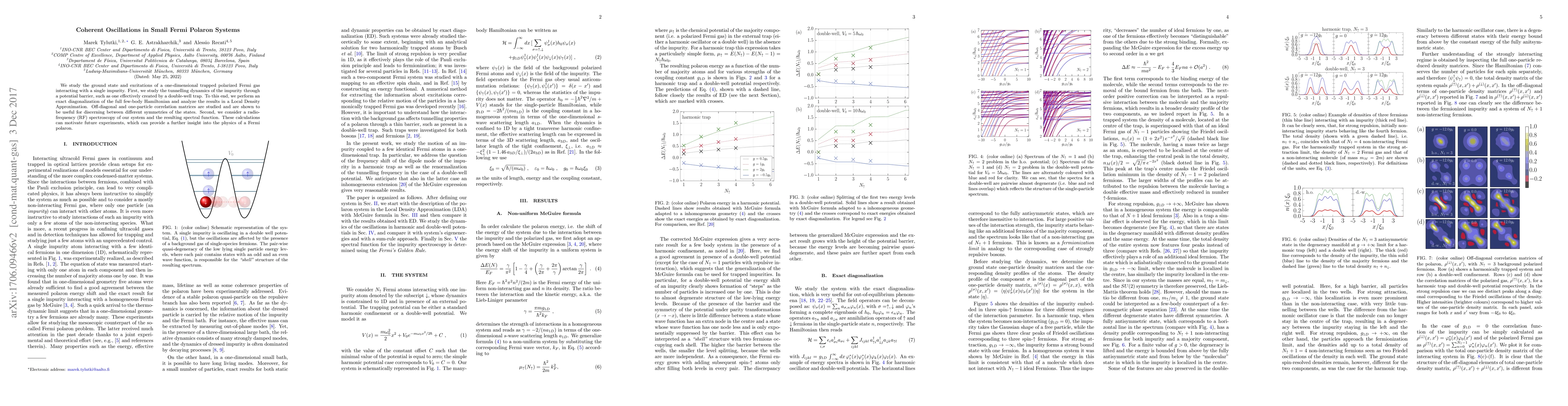 We study the ground state and excitations of a one-dimensional trapped polarized Fermi gas interacting with a single impurity. First, we study the tunnelling dynamics of the impurity through a potential barrier, such as one effectively created by a double-well trap. To this end, we perform an exact diagonalization of the full few-body Hamiltonian and analyze the results in a Local Density Approximation. Off-diagonal and one-particle correlation matrices are studied and are shown to be useful for discerning between different symmetries of the states. Second, we consider a radio-frequency (RF) spectroscopy of our system and the resulting spectral function. These calculations can motivate future experiments, which can provide a further insight into the physics of a Fermi polaron.