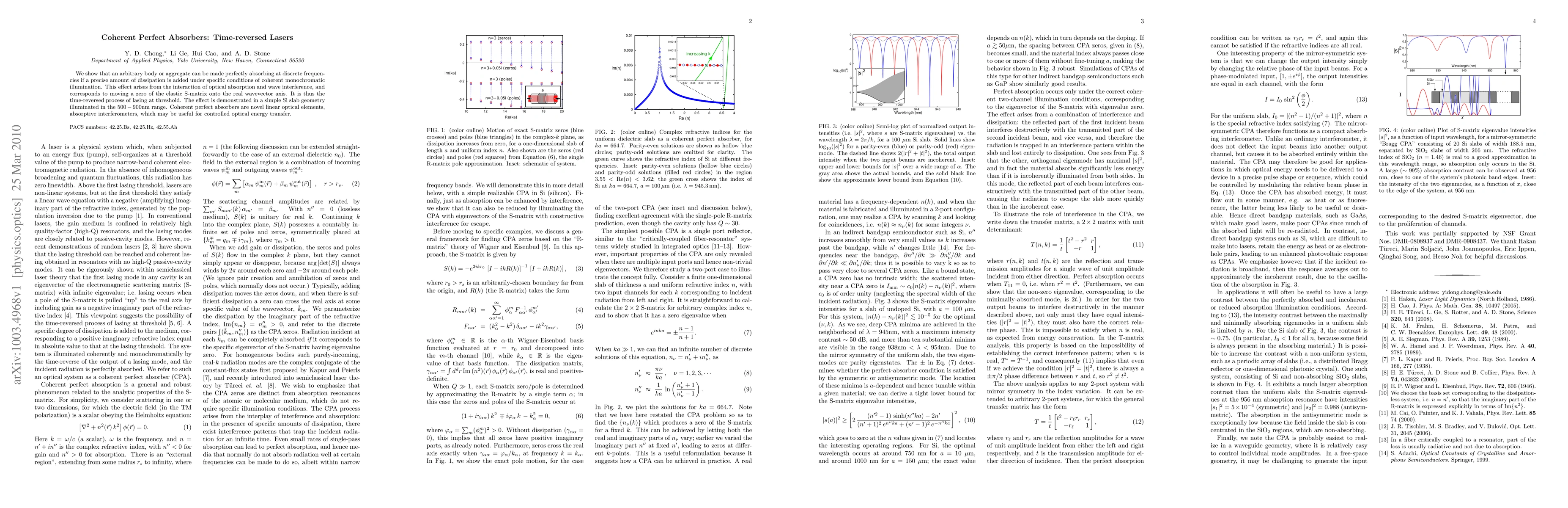 This research demonstrates how precise dissipation and coherent monochromatic illumination can render any body perfectly absorbing at specific frequencies, akin to the time-reversed process of laser operation. The study uses a silicon slab geometry and identifies these devices as coherent perfect absorbers, potentially useful for controlled optical energy transfer.