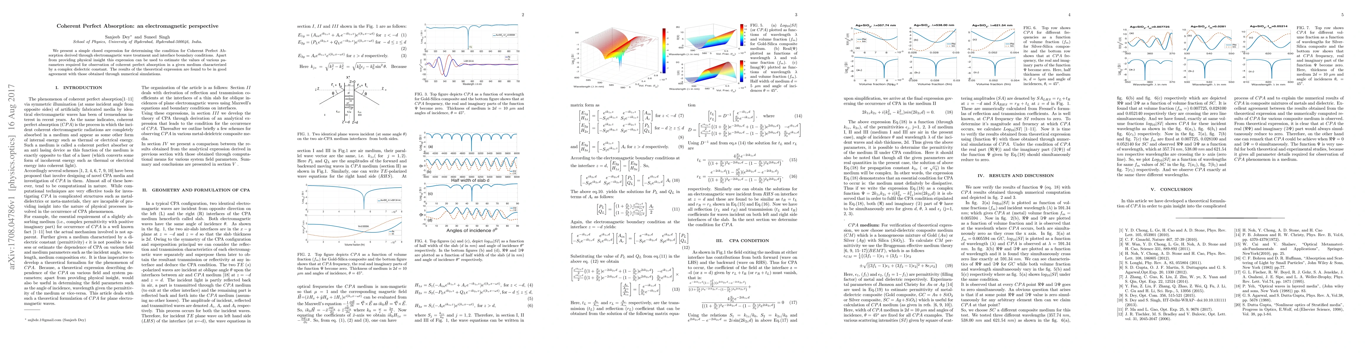 This paper derives a closed-form expression for coherent perfect absorption using electromagnetic wave theory and boundary conditions, offering both physical insight and practical estimation of parameters for observing this phenomenon in complex dielectric media, with theoretical results corroborated by numerical simulations.