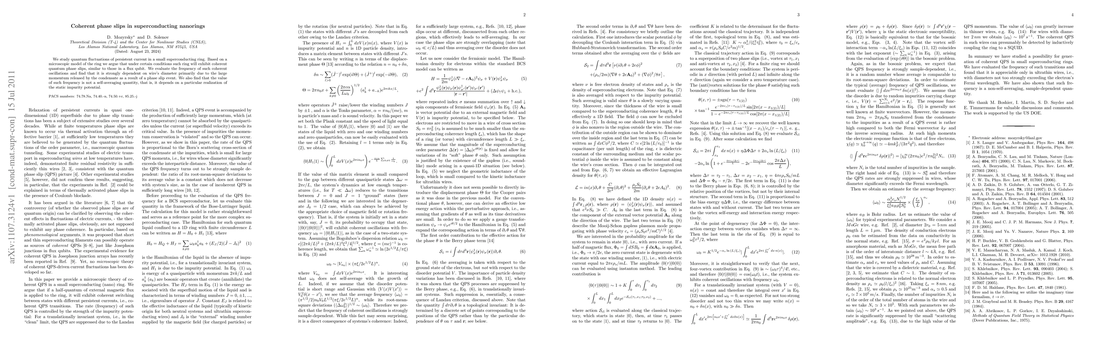 This paper investigates quantum fluctuations in a superconducting nanoring, demonstrating that coherent quantum phase slips can occur under specific conditions. The frequency of these phase slips is found to be highly dependent on the wire's diameter and varies with different static impurity potential configurations.
