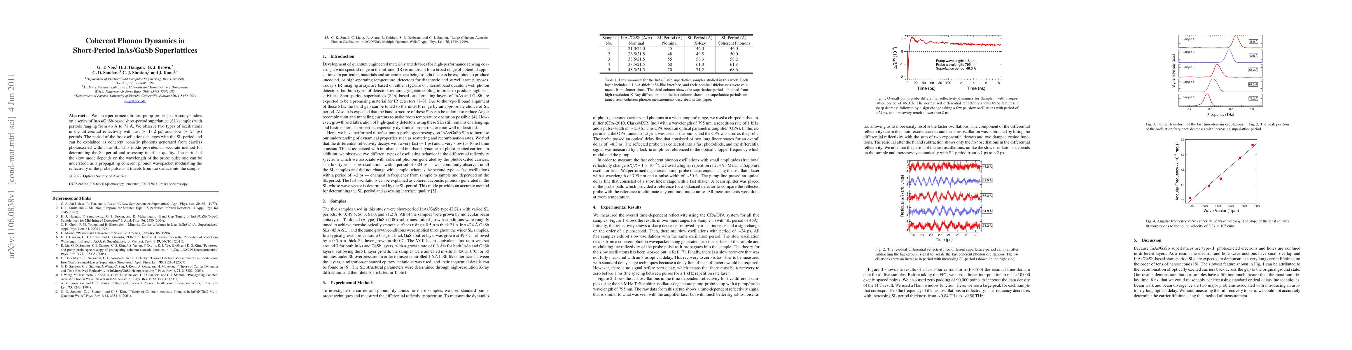 This study investigates ultrafast pump-probe spectroscopy on InAs/GaSb superlattices, revealing fast oscillations linked to coherent acoustic phonons and slow oscillations due to propagating coherent phonon wavepackets. The fast oscillations' period varies with the SL period, offering a method to determine SL period and assess interface quality.