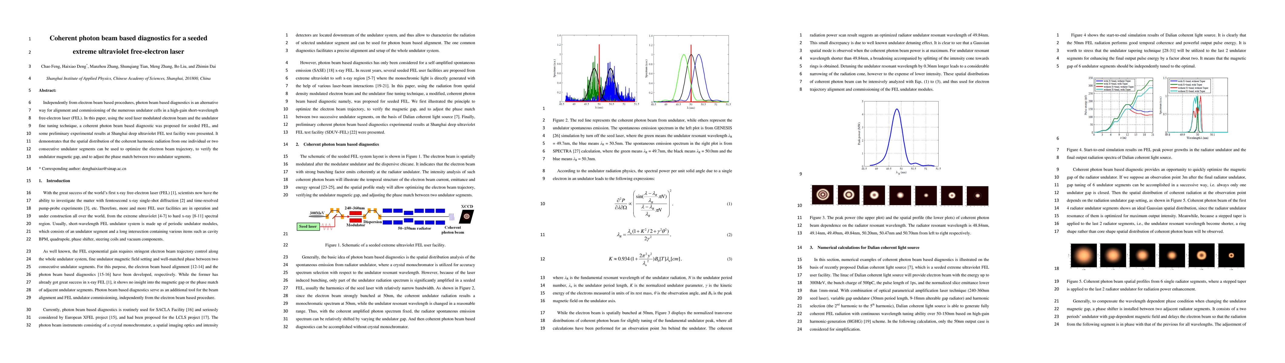 This paper proposes a coherent photon beam-based diagnostic method for aligning and commissioning a seeded extreme ultraviolet free-electron laser, independent of electron beam diagnostics. Preliminary experimental results from the Shanghai deep ultraviolet FEL test facility show that the spatial distribution of coherent harmonic radiation from undulator segments can optimize the electron beam trajectory and adjust phase matching.