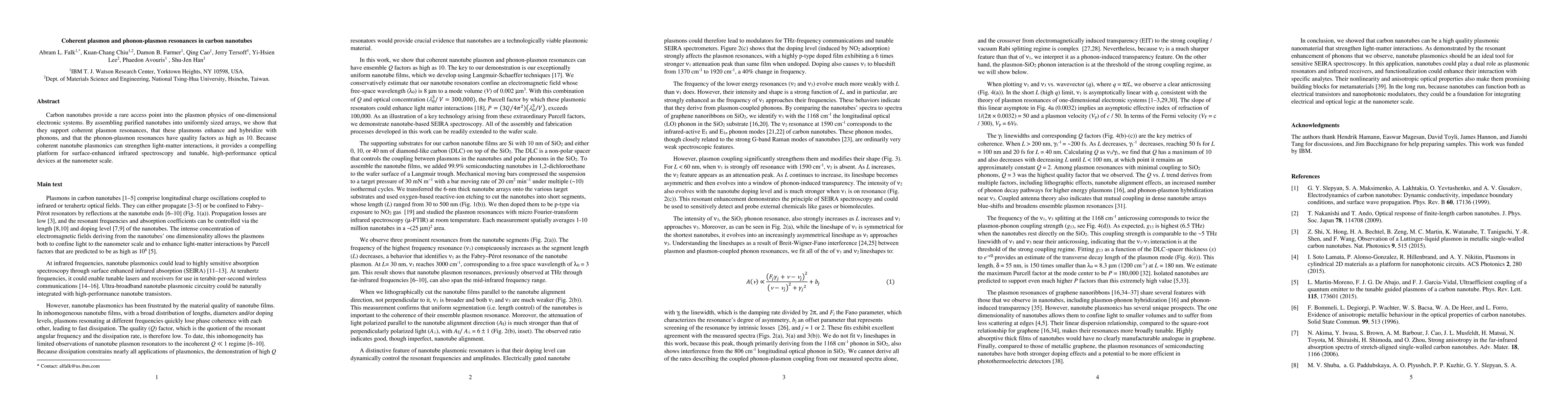 This paper demonstrates that carbon nanotube arrays support coherent plasmon resonances which hybridize with phonons, resulting in phonon-plasmon resonances with high quality factors. This discovery offers a promising platform for advanced optical applications such as surface-enhanced infrared spectroscopy and high-performance nanometer-scale devices.