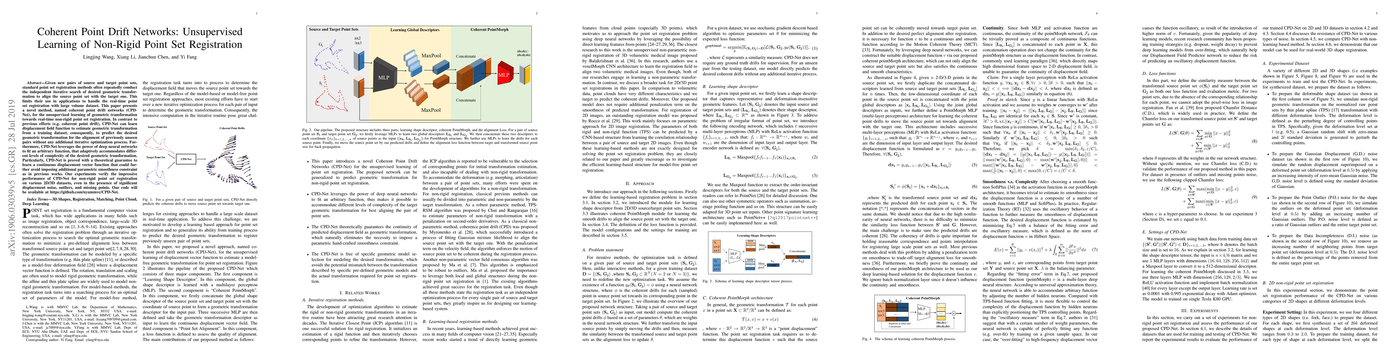 This paper introduces CPD-Net, a novel unsupervised deep learning method for real-time non-rigid point set registration, which learns a displacement field function from training data to predict transformations without iterative optimization. CPD-Net outperforms traditional methods by leveraging deep neural networks for adaptive complexity handling and theoretical guarantees for continuous displacement vector learning.