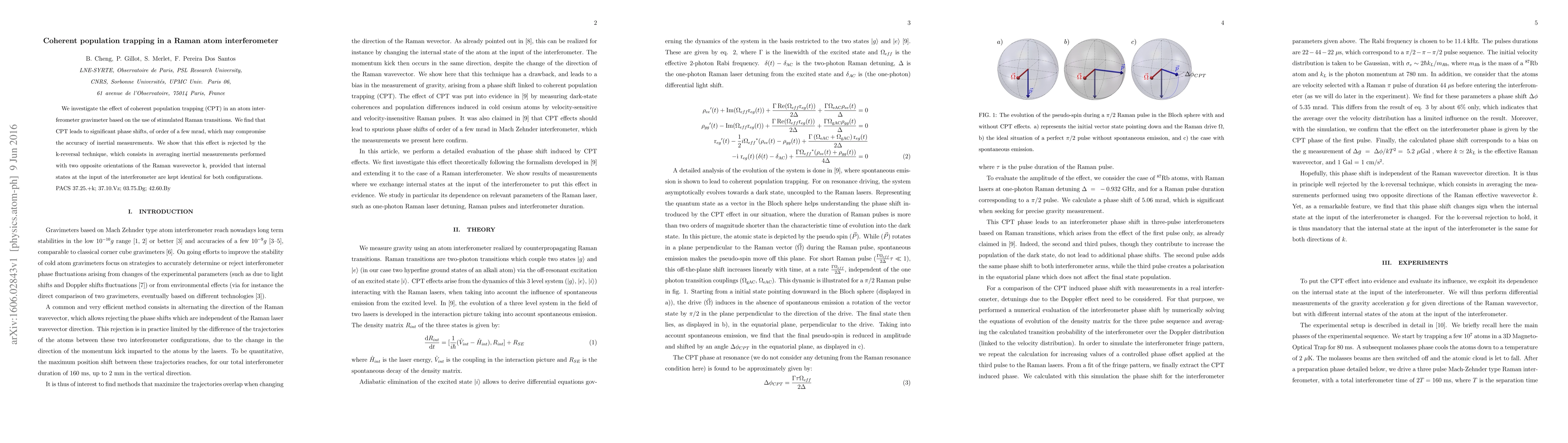 Summary: This study examines the impact of coherent population trapping (CPT) in a Raman atom interferometer, revealing phase shifts that can affect measurement accuracy. The k-reversal technique is shown to mitigate these effects by averaging measurements with opposite Raman wavevector orientations.