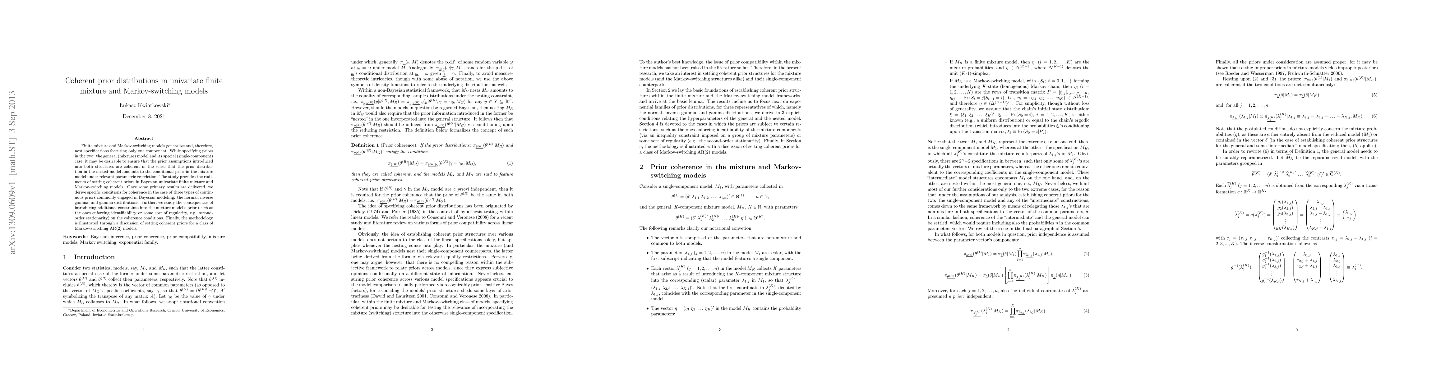 Finite mixture and Markov-switching models generalize and, therefore, nest specifications featuring only one component. While specifying priors in the two: the general (mixture) model and its special (single-component) case, it may be desirable to ensure that the prior assumptions introduced into both structures are coherent in the sense that the prior distribution in the nested model amounts to the conditional prior in the mixture model under relevant parametric restriction. The study provides the rudiments of setting coherent priors in Bayesian univariate finite mixture and Markov-switching models. Once some primary results are delivered, we derive specific conditions for coherence in the case of three types of continuous priors commonly engaged in Bayesian modeling: the normal, inverse gamma, and gamma distributions. Further, we study the consequences of introducing additional constraints into the mixture model's prior (such as the ones enforcing identifiability or some sort of regularity, e.g. second-order stationarity) on the coherence conditions. Finally, the methodology is illustrated through a discussion of setting coherent priors for a class of Markov-switching AR(2) models.