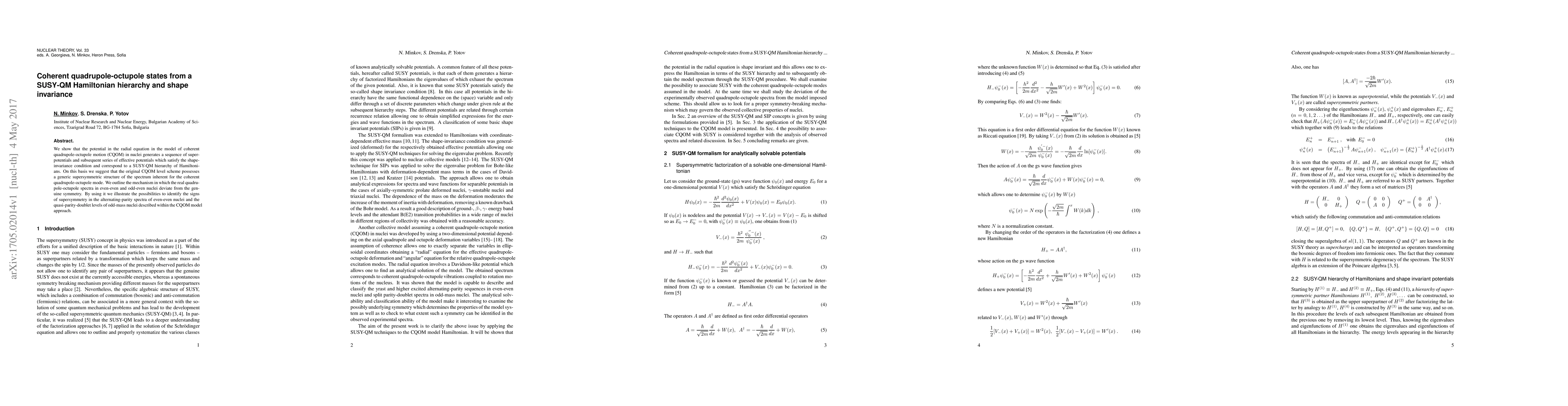 This paper demonstrates that the coherent quadrupole-octupole motion (CQOM) potential in nuclear physics forms a supersymmetric quantum mechanics (SUSY-QM) hierarchy, revealing a shape-invariance condition. The study suggests that the CQOM level scheme inherently exhibits a supersymmetric structure, and it explores deviations from this symmetry in real spectra, highlighting potential identification of supersymmetry in alternating-parity and quasi-parity-doublet levels.