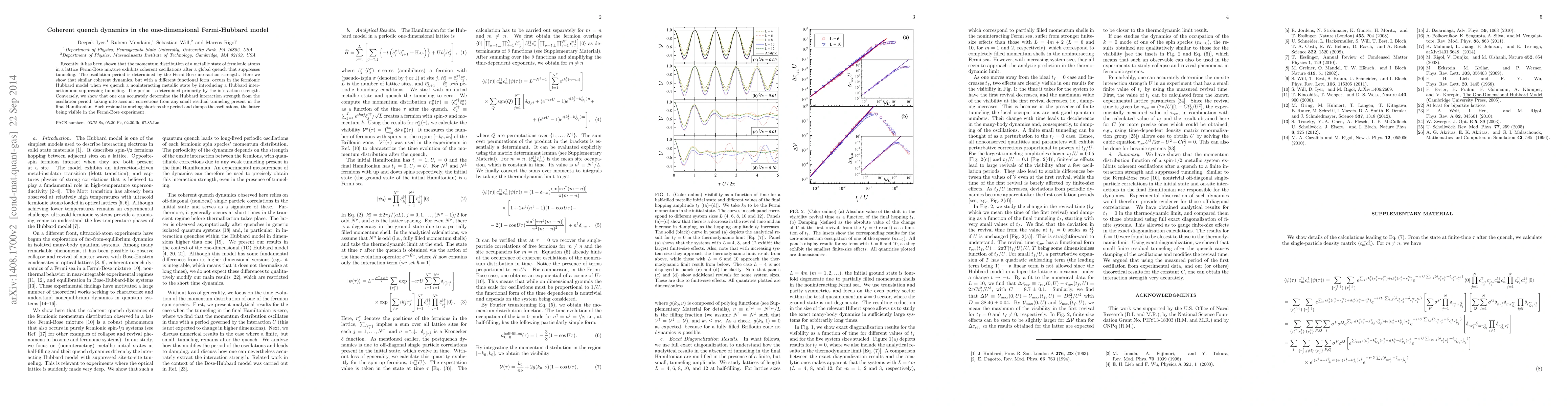 This paper investigates coherent oscillations in the momentum distribution of a one-dimensional Fermi-Hubbard model following a quench that suppresses tunneling, with the oscillation period primarily determined by the interaction strength. It demonstrates that the Hubbard interaction strength can be accurately determined from these oscillations, even with small residual tunneling effects.