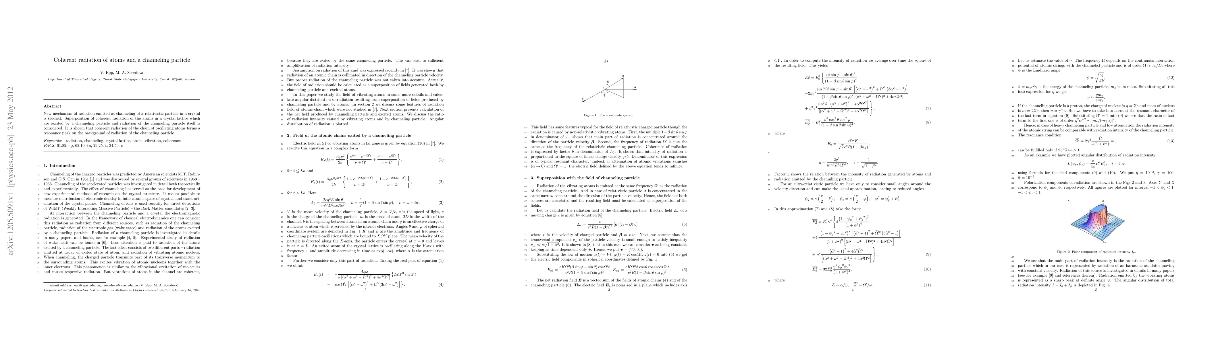 The paper presents a detailed calculation of the electric field produced by both the channeling particle and the vibrating atoms, demonstrating a novel approach to understanding the superposition of their radiation fields.
