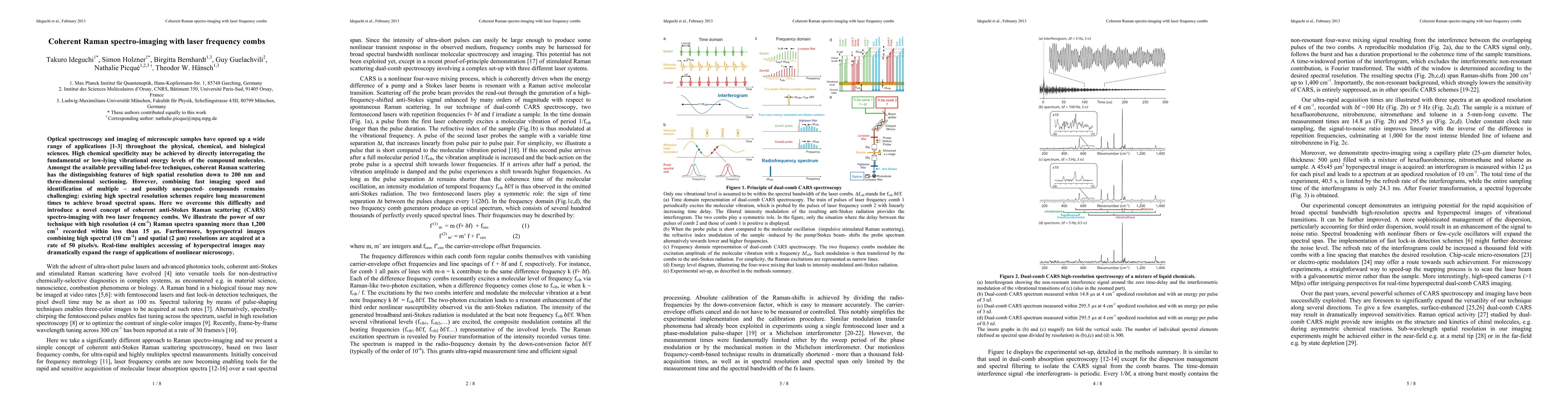 This paper introduces a novel coherent anti-Stokes Raman scattering (CARS) spectro-imaging technique using laser frequency combs, achieving high spectral resolution and rapid imaging speeds, enabling real-time hyperspectral imaging of microscopic samples. The method records high resolution Raman spectra in microseconds, significantly enhancing the speed and efficiency of label-free imaging.