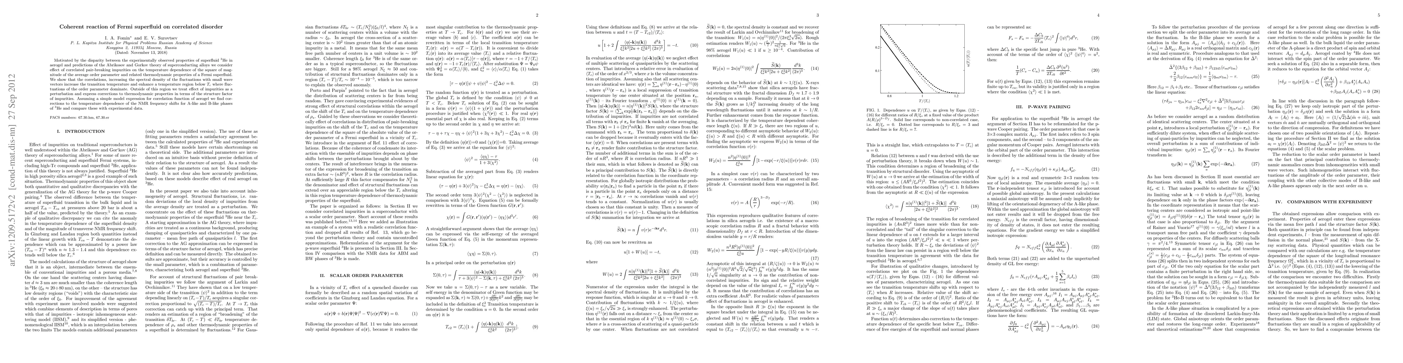This paper investigates how correlated pair-breaking impurities affect the temperature dependence of the order parameter in a Fermi superfluid, particularly superfluid 3He in aerogel. It finds that correlated disorder increases the transition temperature and enhances fluctuations below Tc, providing corrections to thermodynamic properties and NMR frequency shifts that align with experimental data.