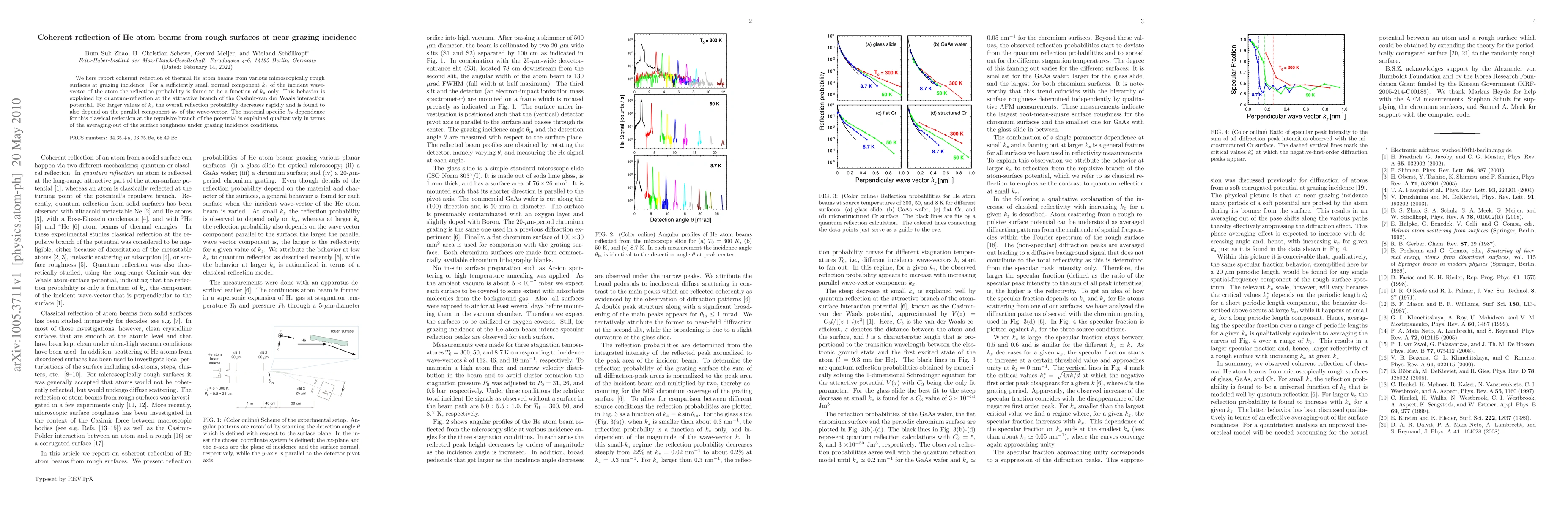 This study investigates the coherent reflection of thermal He atom beams from microscopically rough surfaces at near-grazing incidence, revealing that quantum-reflection effects dominate for small normal wave-vector components, while classical reflection, influenced by surface roughness, becomes significant for larger values.