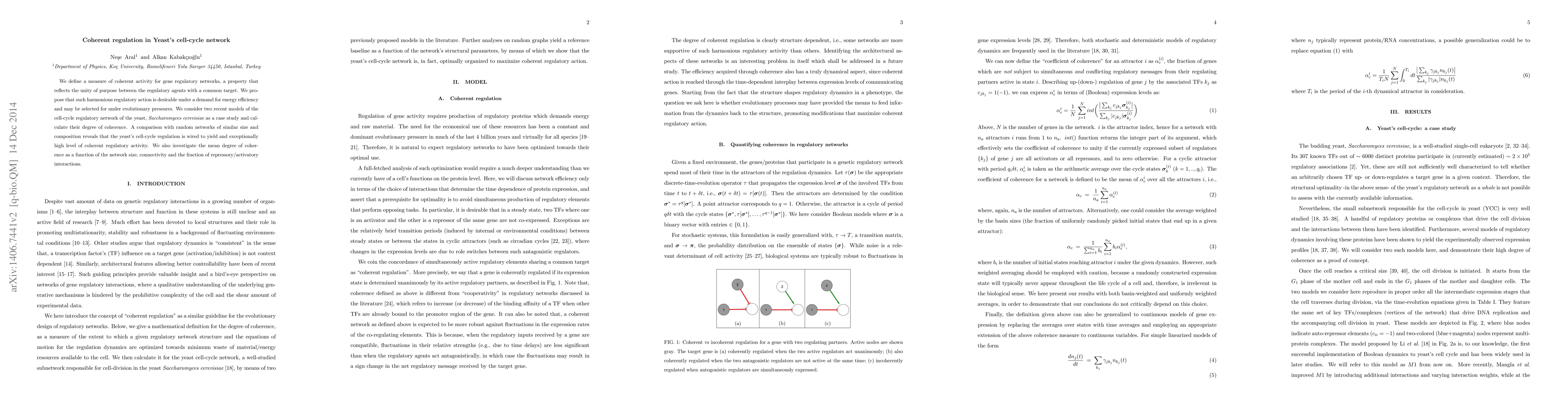 This paper introduces a measure of coherent activity in gene regulatory networks, demonstrating that the yeast cell cycle network exhibits a high level of coherent regulation compared to random networks. The study suggests that this coherence may enhance energy efficiency and could be a result of evolutionary selection.
