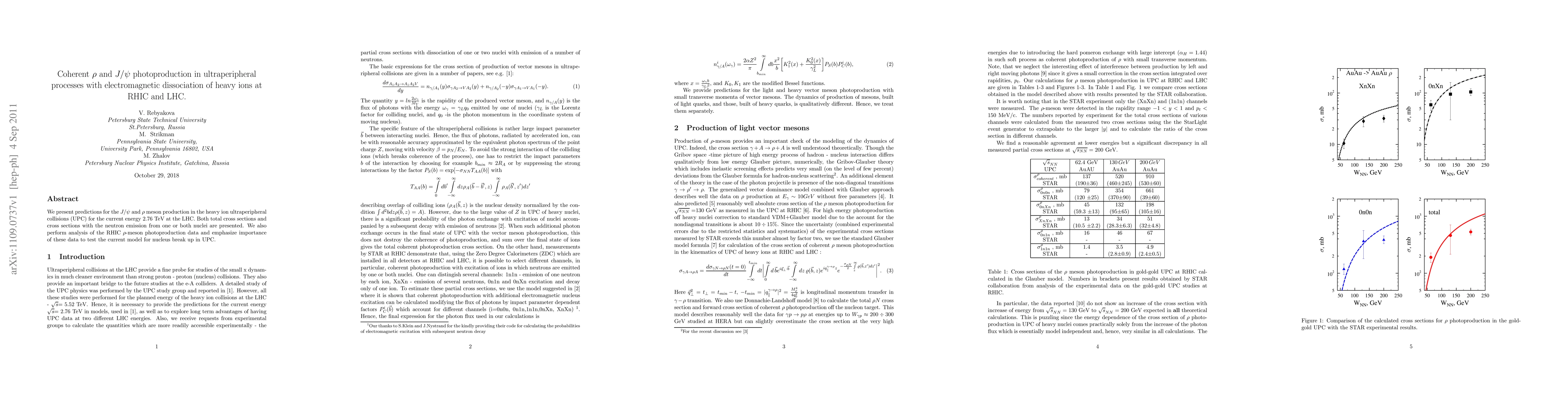 We present predictions for the J/psi and rho meson production in the heavy ion ultraperipheral collisions (UPC) for the current energy 2.76 TeV at the LHC. Both total cross sections and cross sections with the neutron emission from one or both nuclei are presented. We also analyse the RHIC rho meson photoproduction data and emphasize importance of these data to test the current model for nucleus break up in UPC.