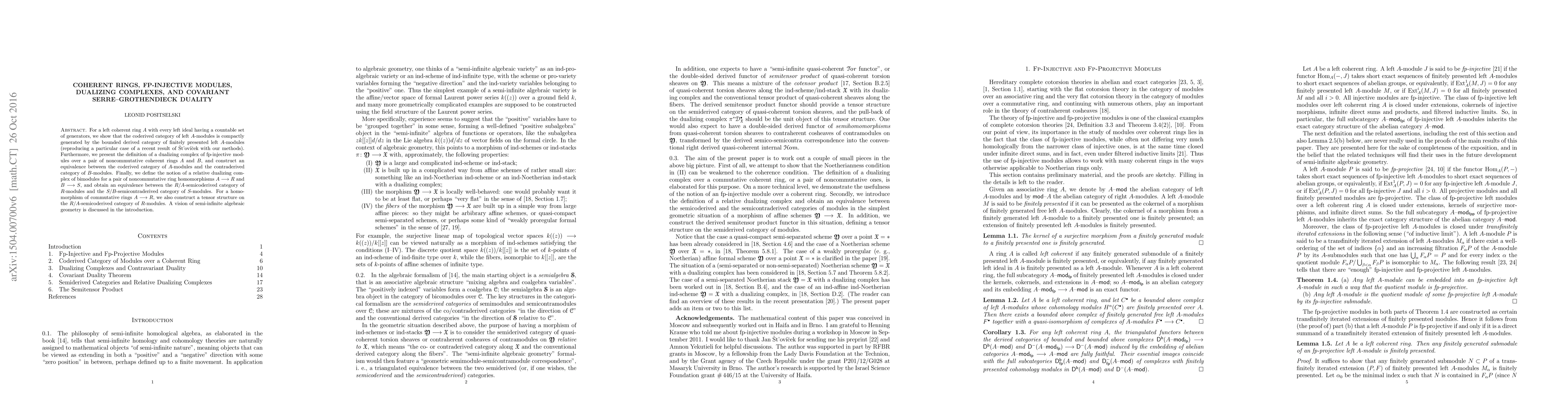 For a left coherent ring A with every left ideal having a countable set of generators, we show that the coderived category of left A-modules is compactly generated by the bounded derived category of finitely presented left A-modules (reproducing a particular case of a recent result of Stovicek with our methods). Furthermore, we present the definition of a dualizing complex of fp-injective modules over a pair of noncommutative coherent rings A and B, and construct an equivalence between the coderived category of A-modules and the contraderived category of B-modules. Finally, we define the notion of a relative dualizing complex of bimodules for a pair of noncommutative ring homomorphisms A \to R and B \to S, and obtain an equivalence between the R/A-semicoderived category of R-modules and the S/B-semicontraderived category of S-modules. For a homomorphism of commutative rings A\to R, we also construct a tensor structure on the R/A-semicoderived category of R-modules. A vision of semi-infinite algebraic geometry is discussed in the introduction.