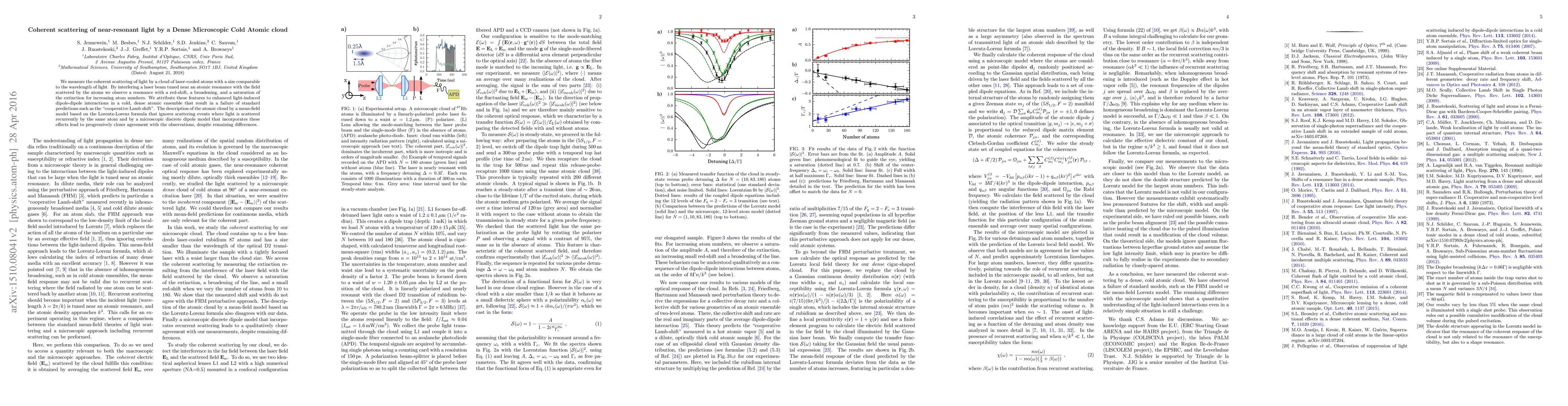 This research investigates the coherent scattering of near-resonant light by a dense cloud of cold, laser-cooled atoms, revealing a red-shifted resonance and saturation effects due to enhanced light-induced dipole-dipole interactions. Mean-field and discrete dipole models show improved agreement with observations compared to standard predictions.