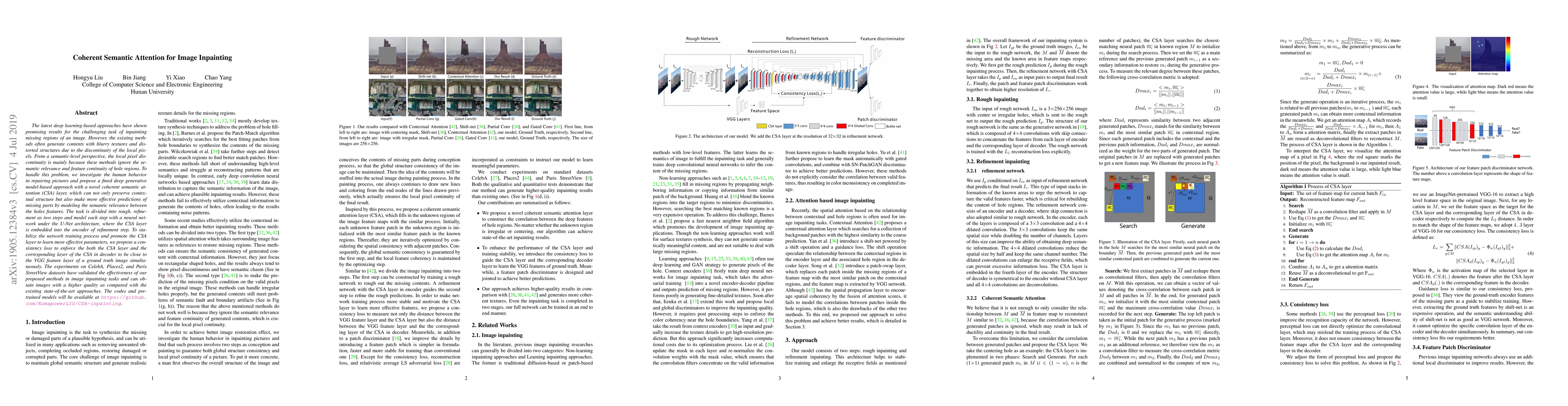 Researchers propose a new method for image inpainting that uses coherent semantic attention to preserve contextual structure and improve predictions of missing parts, achieving higher quality results than existing approaches.