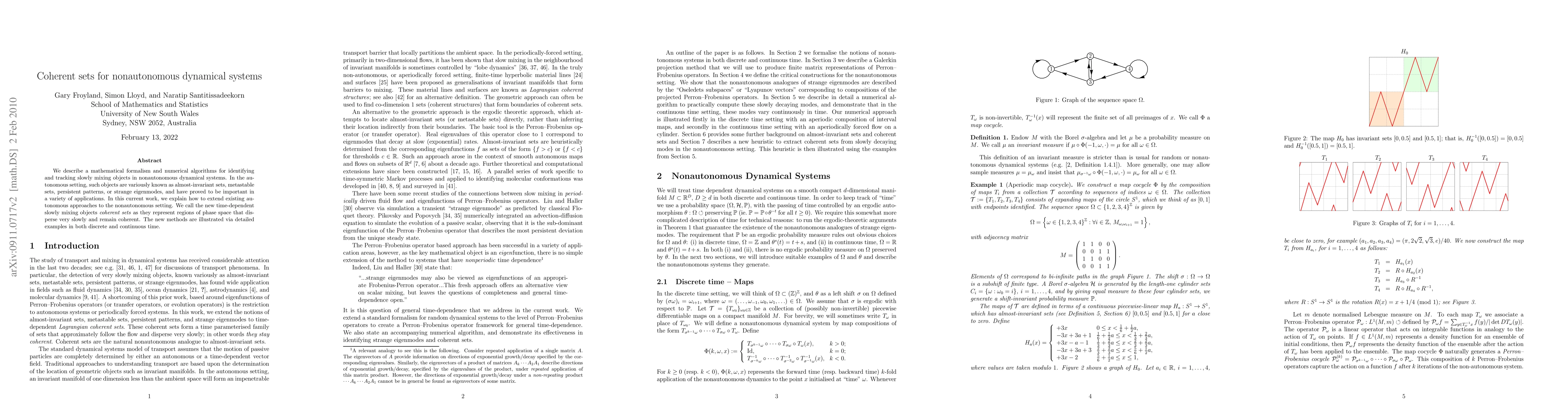 This paper introduces a mathematical framework and numerical methods for identifying and tracking coherent sets in nonautonomous dynamical systems, extending concepts from autonomous systems like almost-invariant sets. These coherent sets represent slowly mixing regions in phase space that maintain their structure over time, illustrated through examples in both discrete and continuous time.