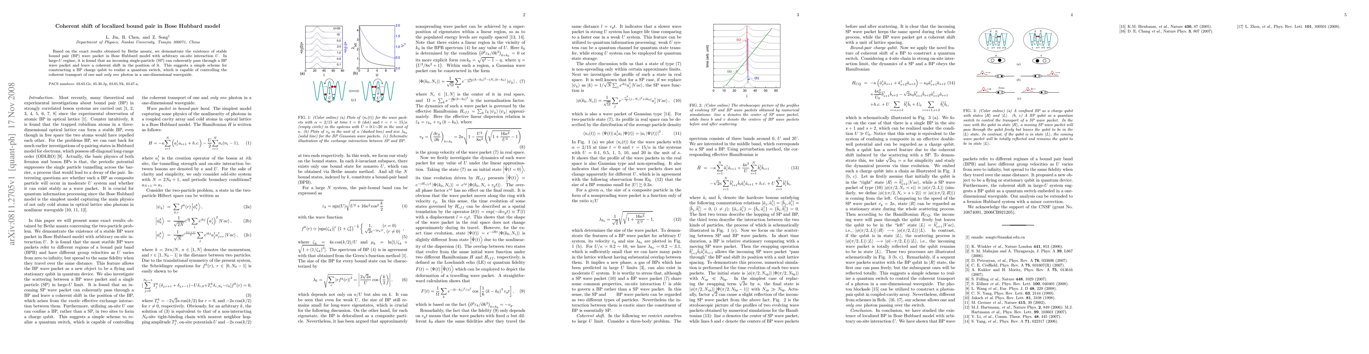 This paper demonstrates the existence of stable bound pair wave packets in the Bose Hubbard model and shows that a single-particle can coherently shift these pairs, proposing a method for constructing bound pair charge qubits for quantum switches controlling single photon transport in waveguides.