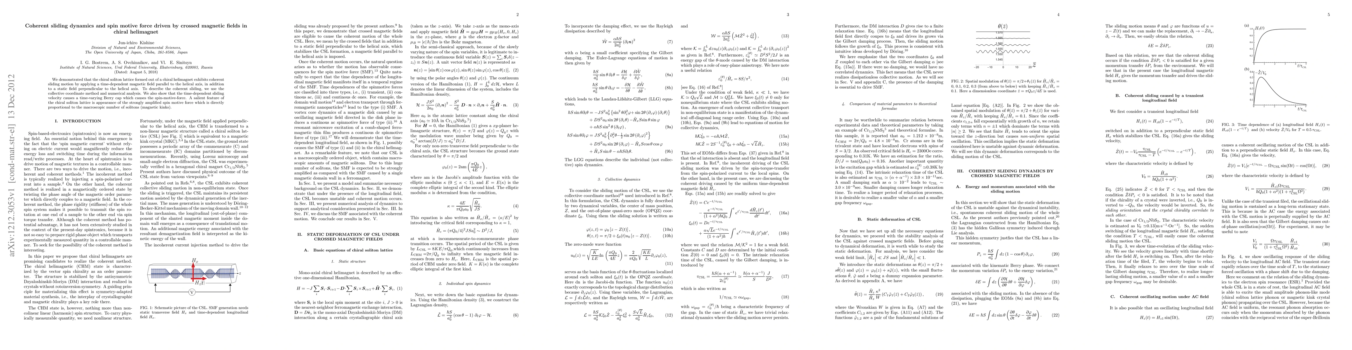 We demonstrated that the chiral soliton lattice formed out of a chiral helimagnet exhibits coherent sliding motion by applying a time-dependent magnetic field parallel to the helical axis, in addition to a static field perpendicular to the helical axis. To describe the coherent sliding, we use the collective coordinate method and numerical analysis. We also show that the time-dependent sliding velocity causes a time-varying Berry cap which causes the spin-motive-force. A salient feature of the chiral soliton lattice is appearance of the strongly amplified spin motive force which is directly proportional to the macroscopic number of solitons (magnetic kinks).